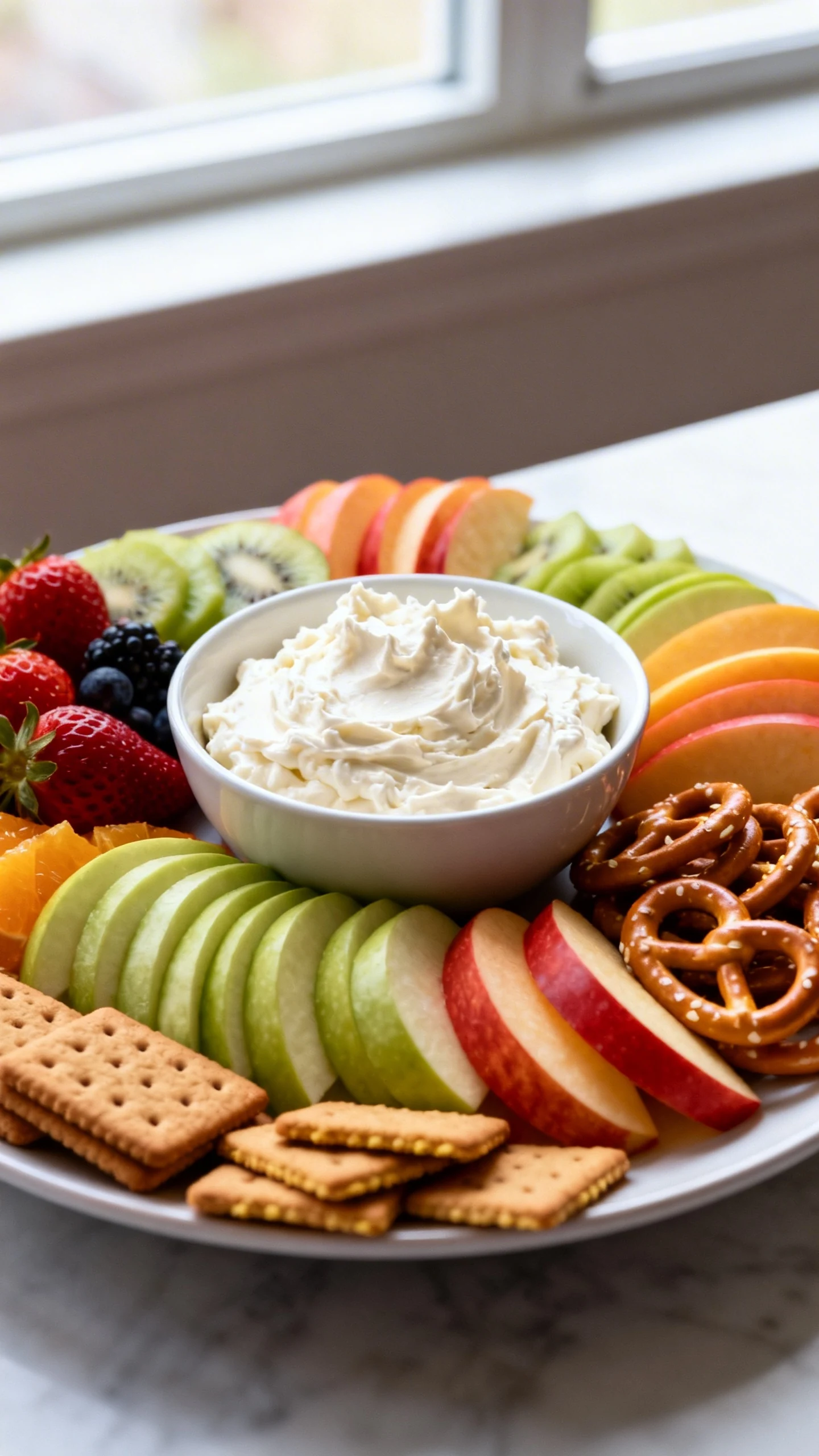 For serving, fresh fruit is the obvious move. Strawberries, apple slices, grapes, pineapple chunks, blueberries, banana slices, kiwi, and melon all work beautifully. You can also serve it with pretzels, vanilla wafers, or graham crackers if you want a sweet and salty situation.