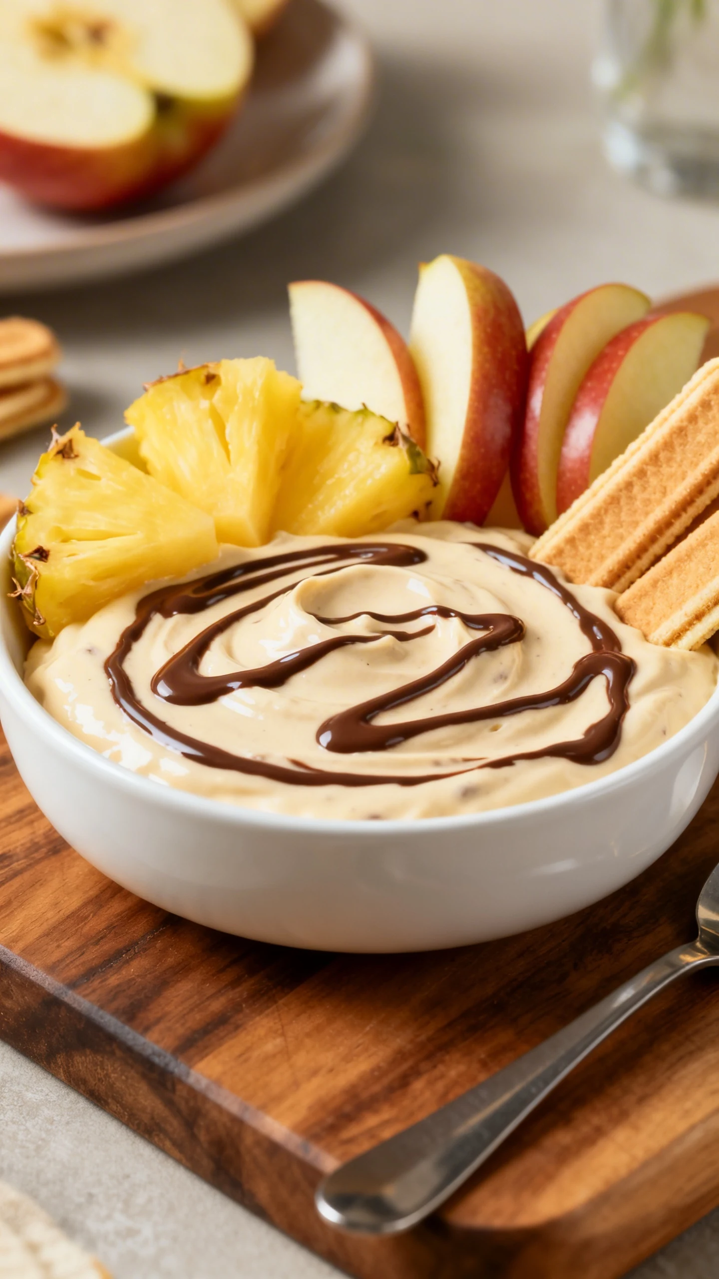 - Chocolate drizzle: Top the finished dip with a light drizzle of chocolate sauce if you want it to lean dessert-first.