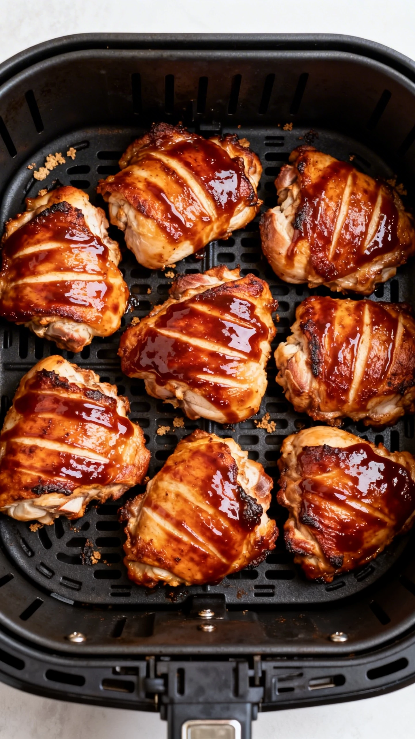 You can freeze cooked thighs too. Wrap tightly, freeze up to 2 months, then thaw overnight in the fridge. Reheat in the air fryer and sauce at the end, same as before.