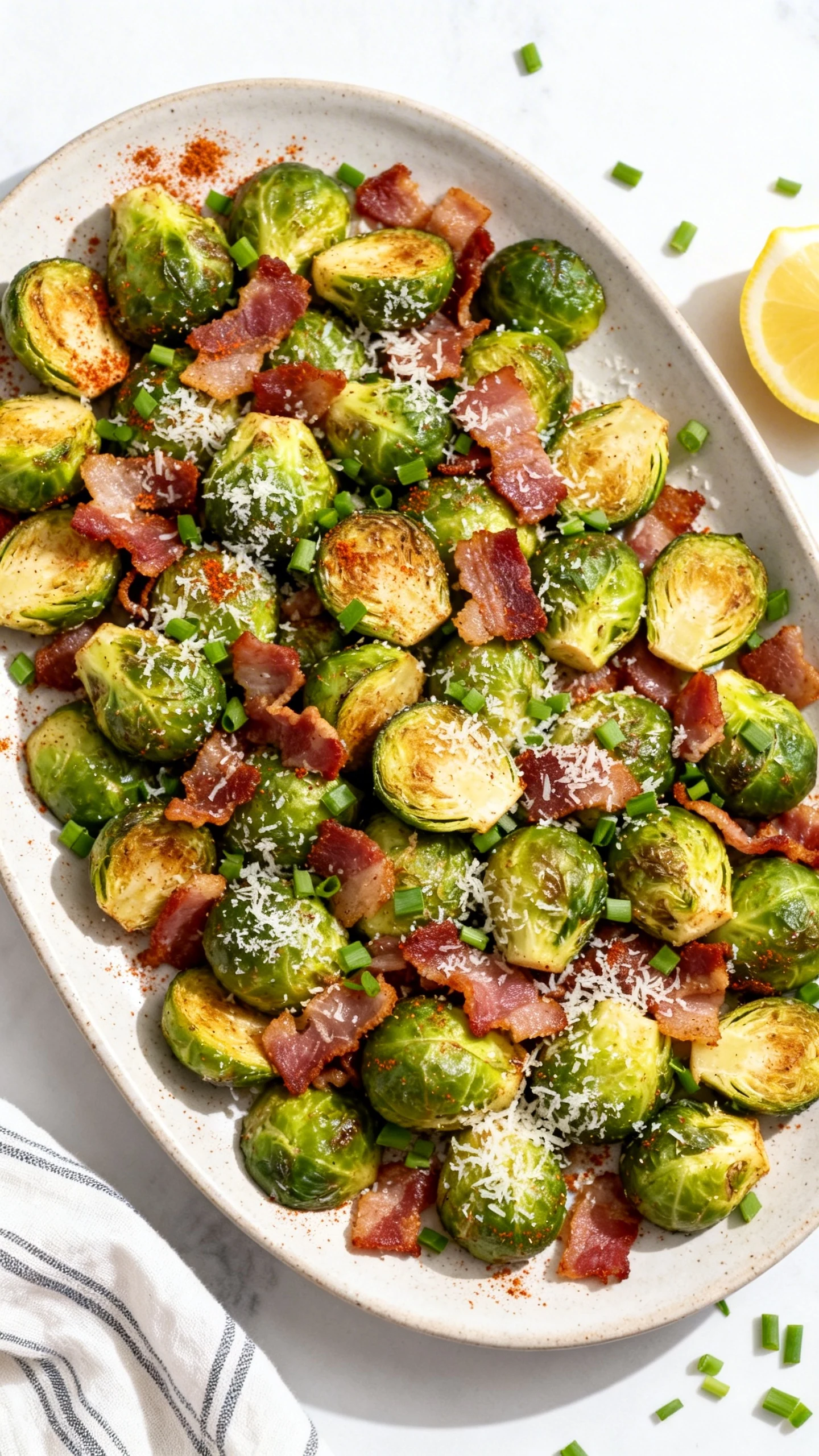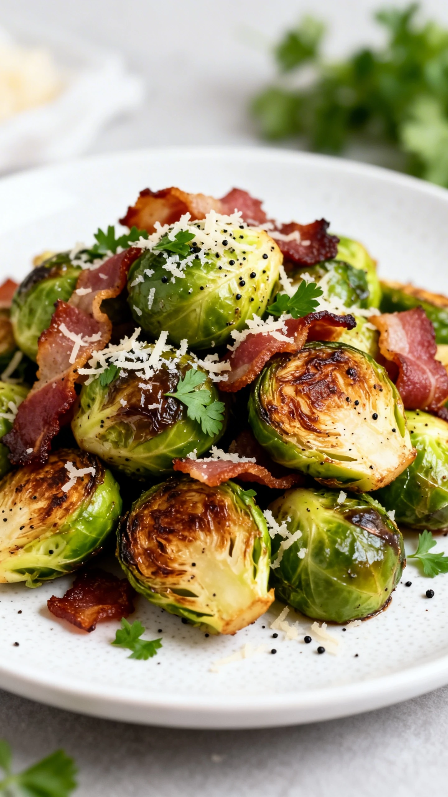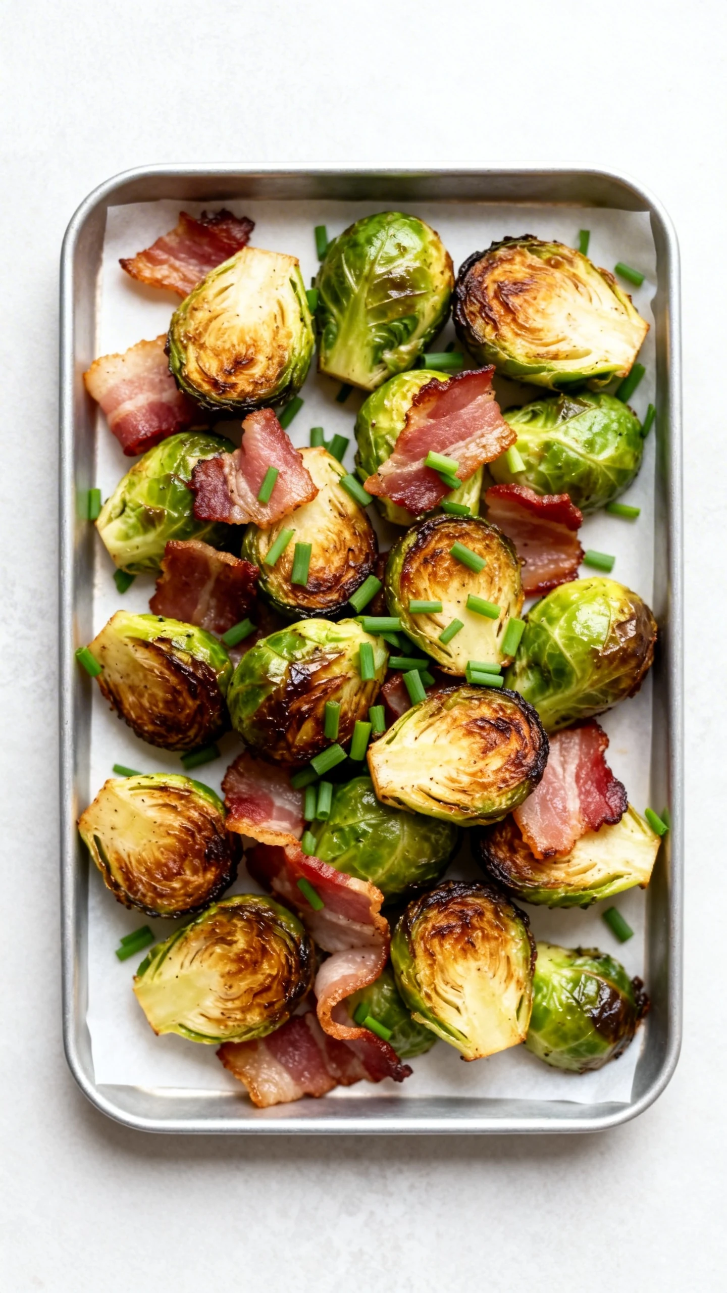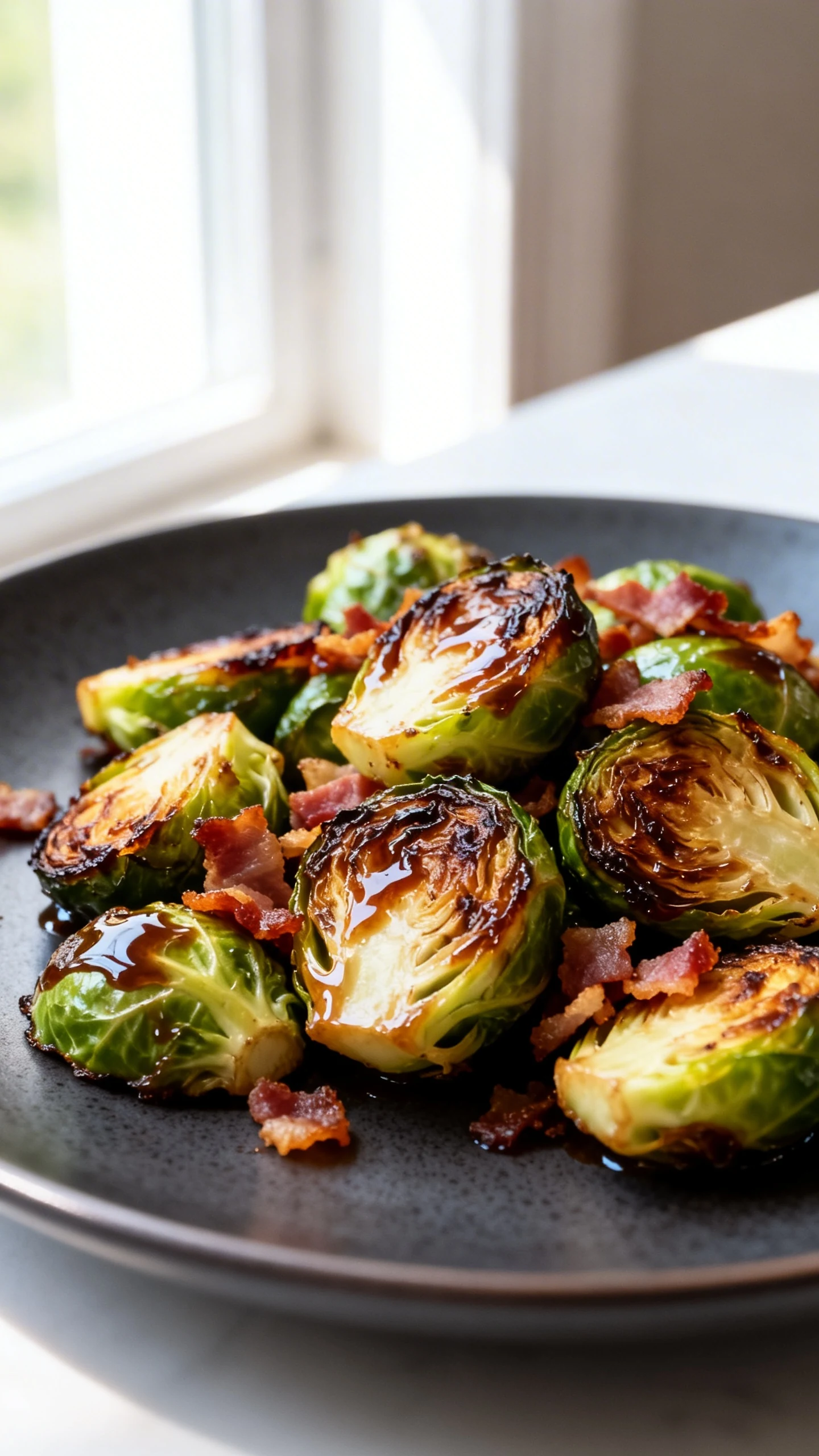 Serve immediately. This dish peaks when it’s hot and crunchy. If it sits too long, the bacon stays tasty but the sprouts soften. Still good, just less “wow.”