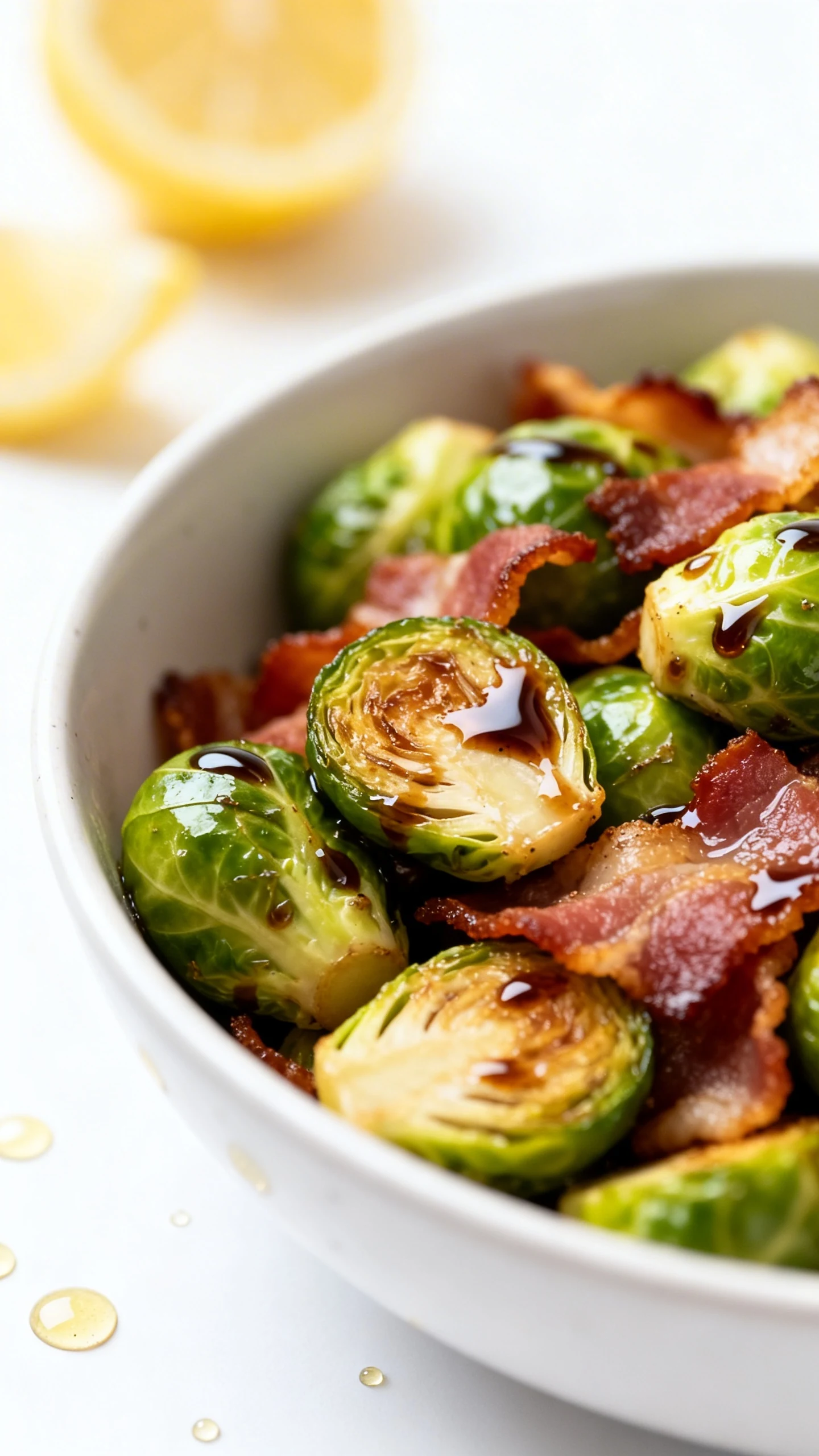 If you plan to meal prep, keep any finishing acid (lemon or extra balsamic) separate and add it after reheating. That way the sprouts don’t taste overly sharp after a couple days. Small move, big payoff.