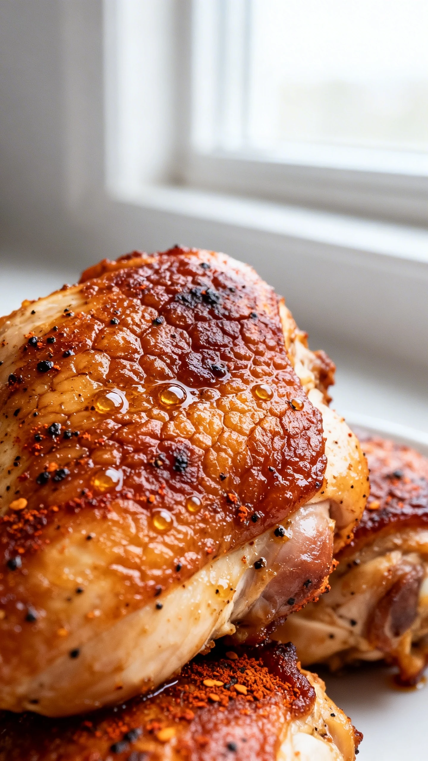 Store leftovers in an airtight container in the fridge for up to 4 days. Keep the thighs in a single layer if you can; stacking makes the skin soggy, and nobody asked for that.