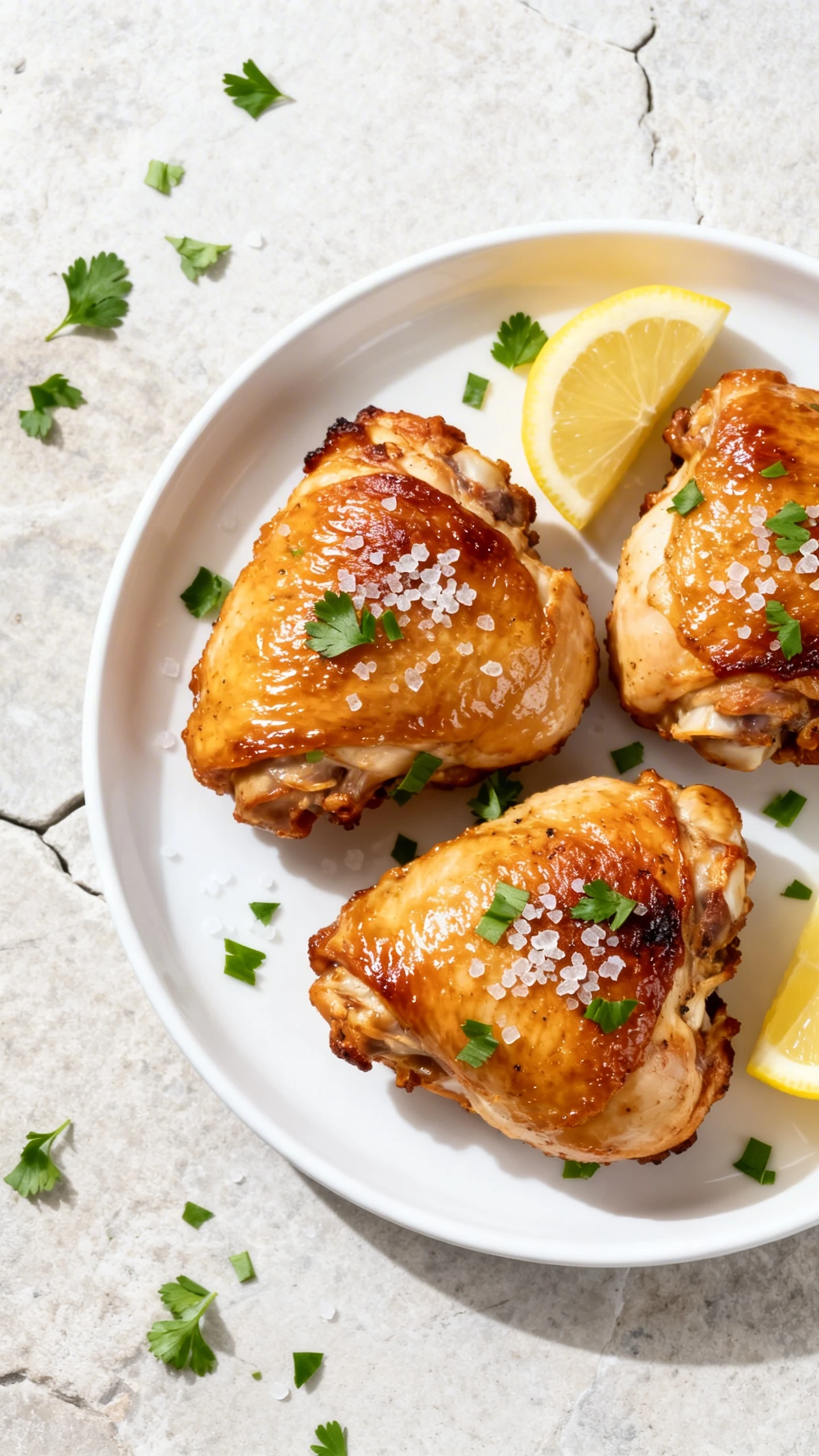 - Chicken thighs (bone-in, skin-on for best crisp; boneless works too)