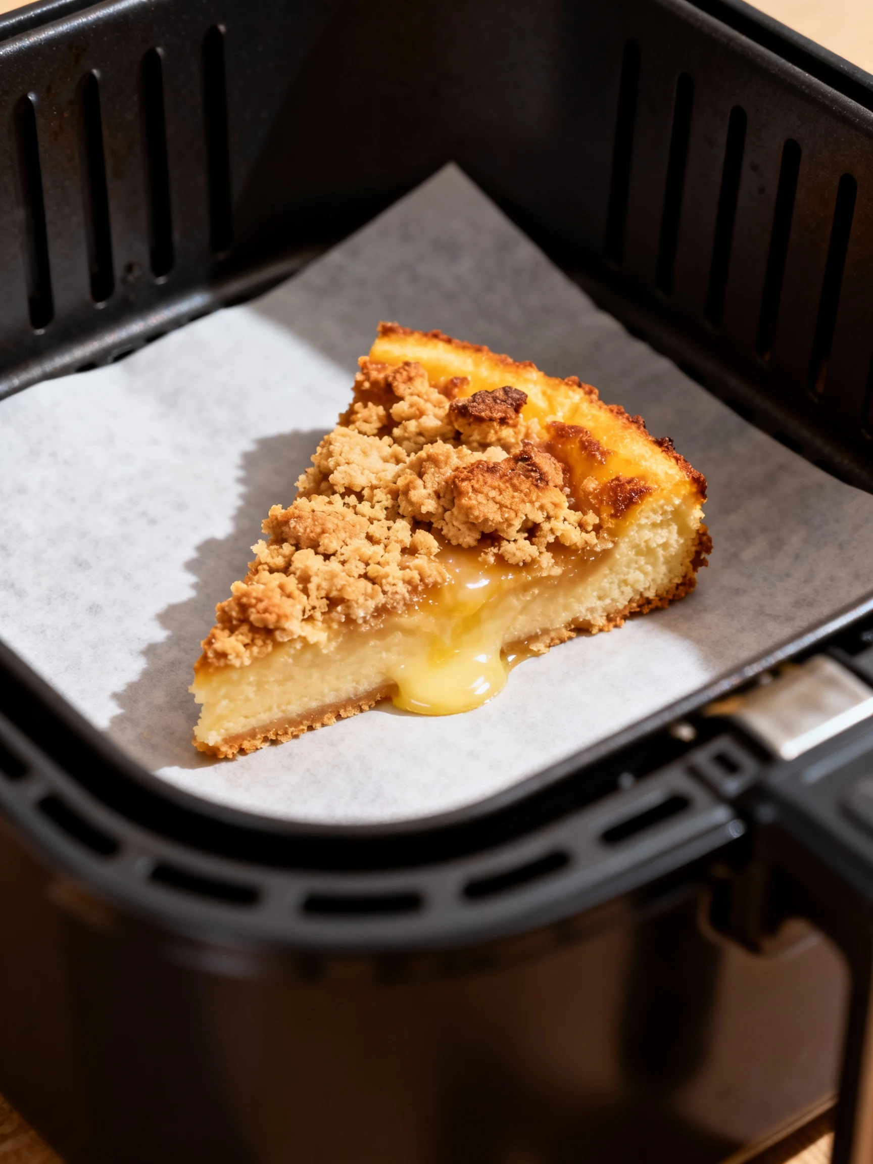 For longer storage, refrigerate up to 5 days. Reheat slices in the air fryer at 300°F for 3 to 5 minutes to bring back the warm cake vibe and re-crisp the topping. Microwaves work, but they also turn streusel into a soft blanket, so choose your battles.