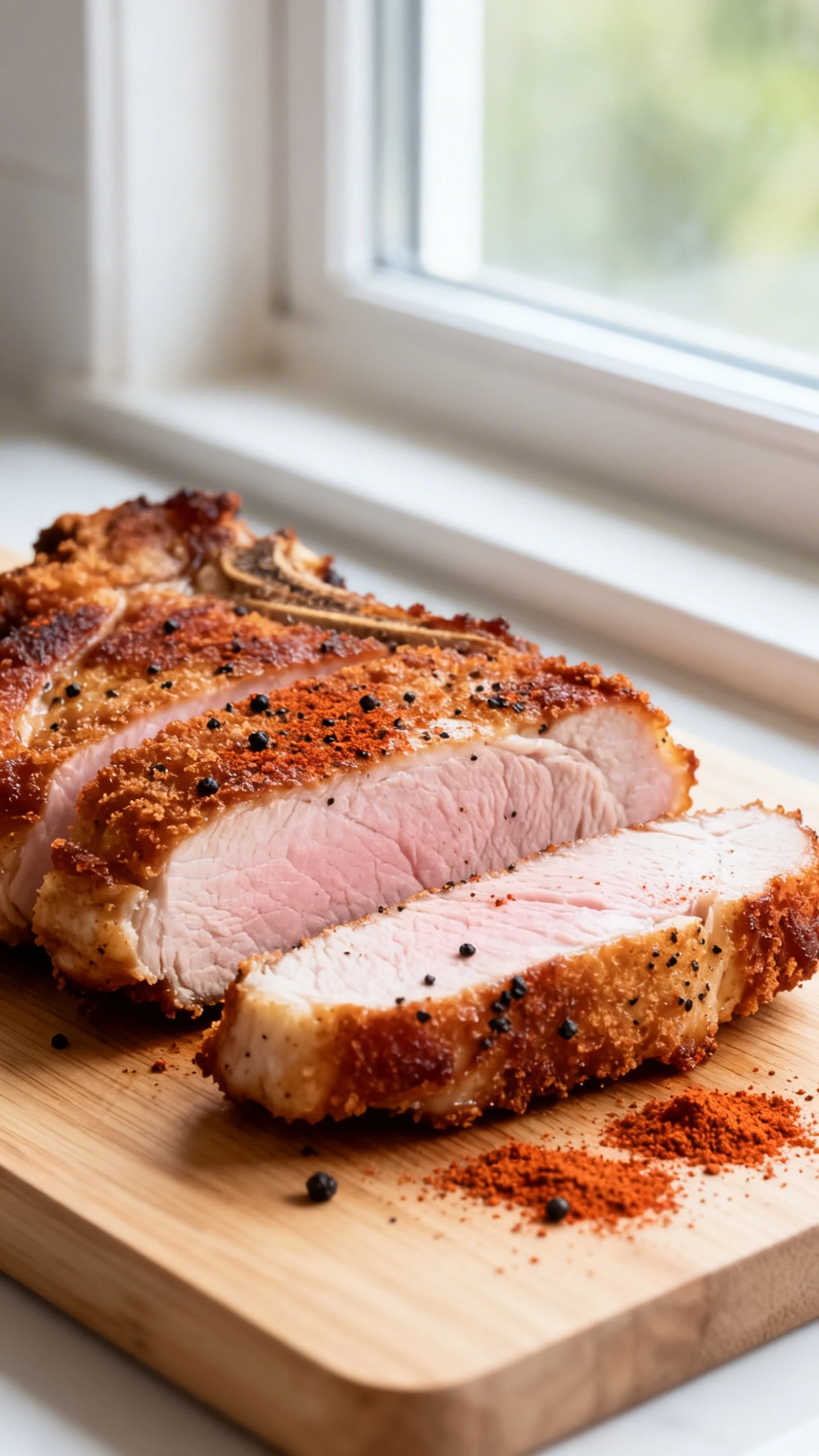 8. Rest before slicing. Let the chops rest on a plate for 5 minutes. This keeps the juices inside instead of flooding your cutting board like a tiny crime scene.