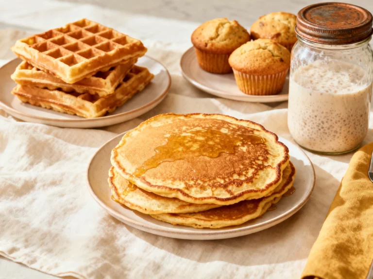 Turn leftover starter into crisp, fluffy waffles fast, with easy swaps, smart tips, and foolproof breakfast timing. Your sourdough discard has been sitting in the fridge, judging you. Again. Good news: it is about to become the crispiest, fluffiest, most low effort breakfast flex in your kitchen. Waffles are already elite, but adding discard gives…