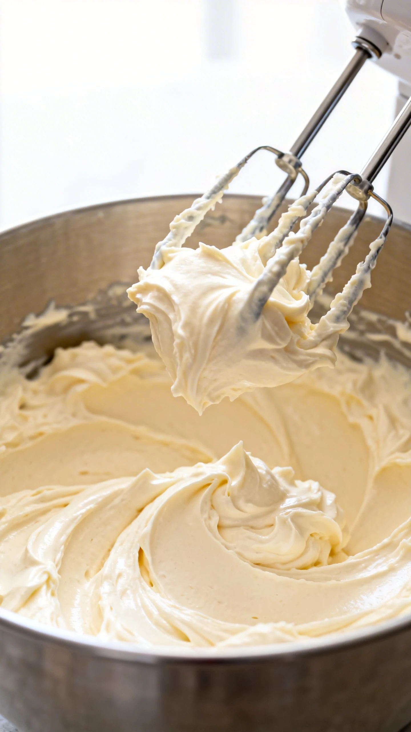Beat the base. Add the softened cream cheese to a mixing bowl. Beat it with a hand mixer until smooth and creamy, about 1 to 2 minutes. Scrape down the sides so everything mixes evenly.