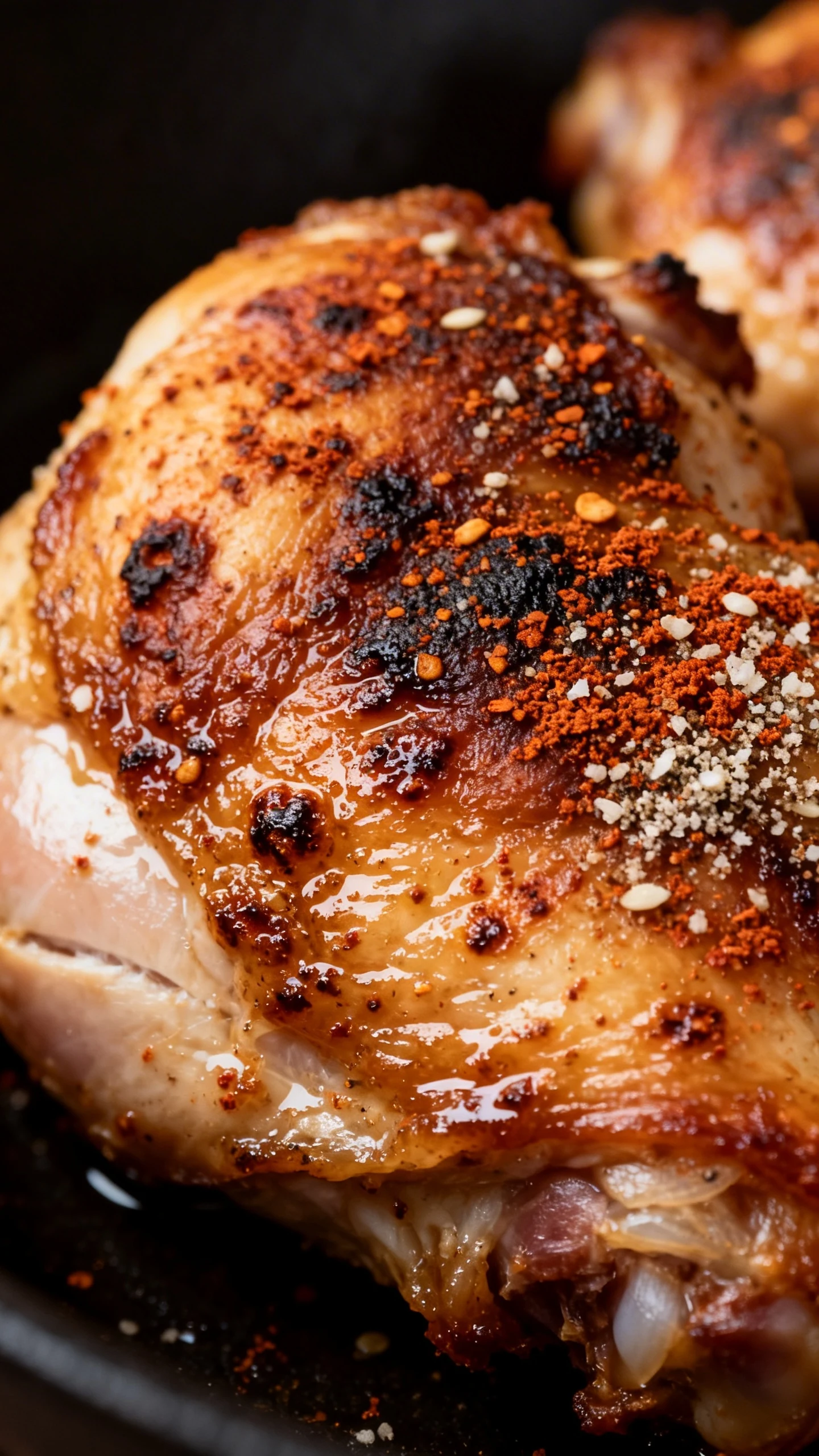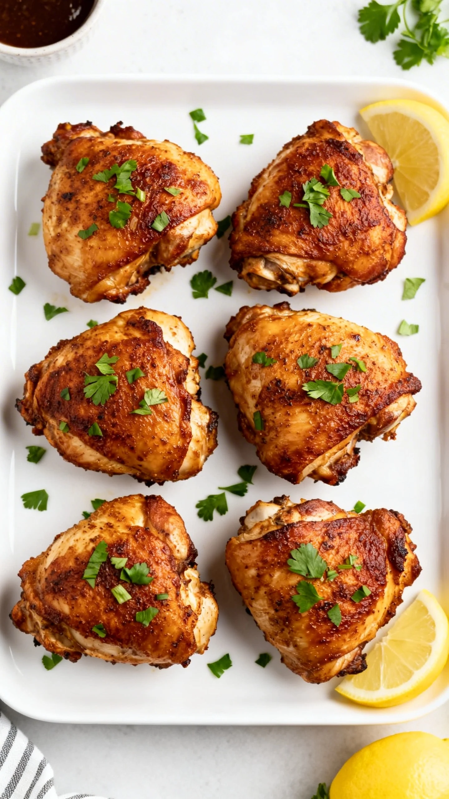 Store leftover thighs in an airtight container in the fridge for up to 4 days. Keep them whole if possible; cutting exposes more surface area and dries them out faster. If you know you’ll reheat later, don’t drown them in sauce beforehand. Save sauces for serving.