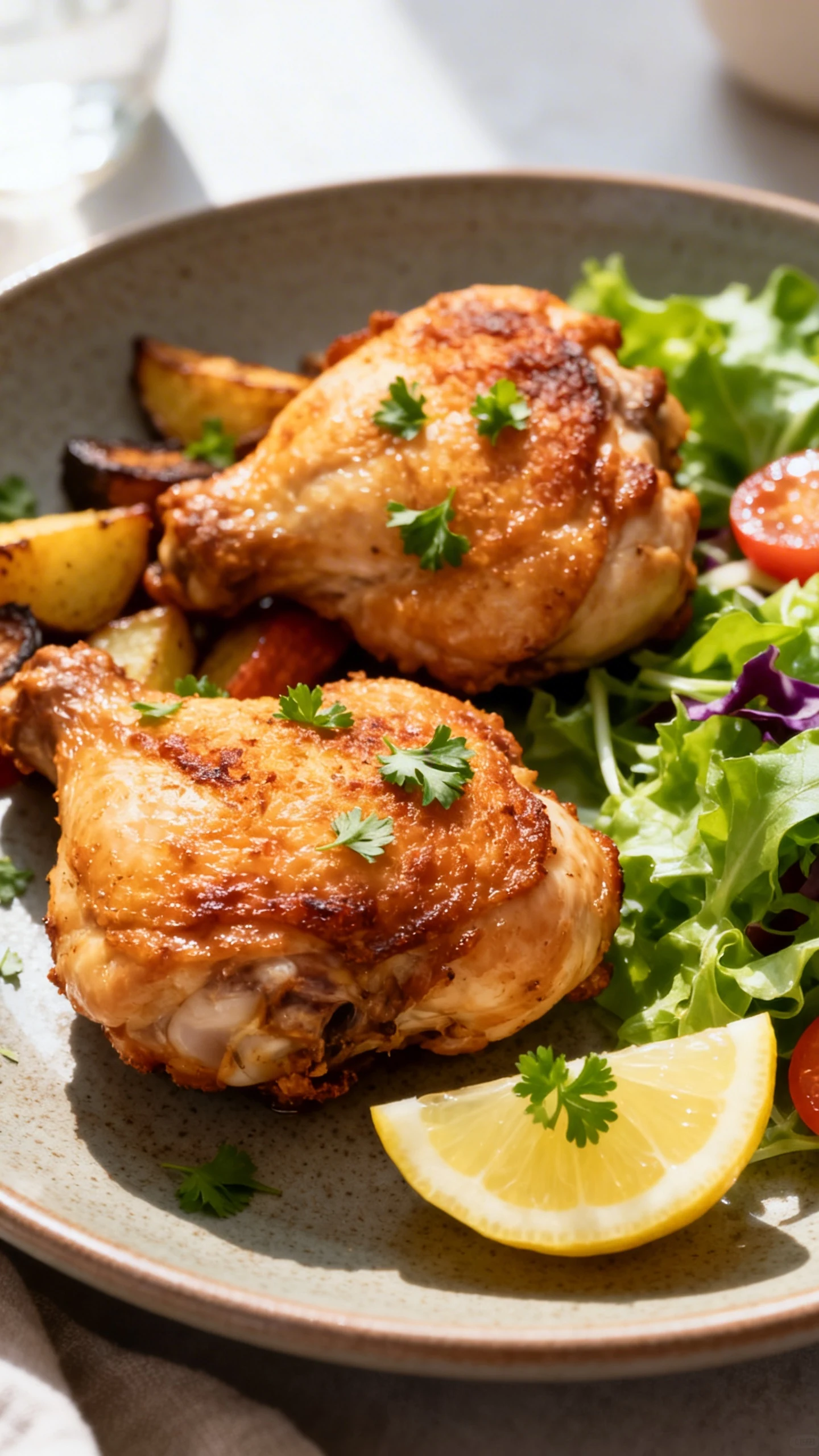 This is the kind of dinner that makes you feel like you hacked reality: crunchy skin, juicy meat, and barely any mess. The method stays simple, but the results feel like something you’d pay for at a restaurant. Dry the skin, season boldly, give the air room to work, and finish hot for the crisp. Do that, and you’ll have chicken thighs that disappear faster than leftovers usually should.