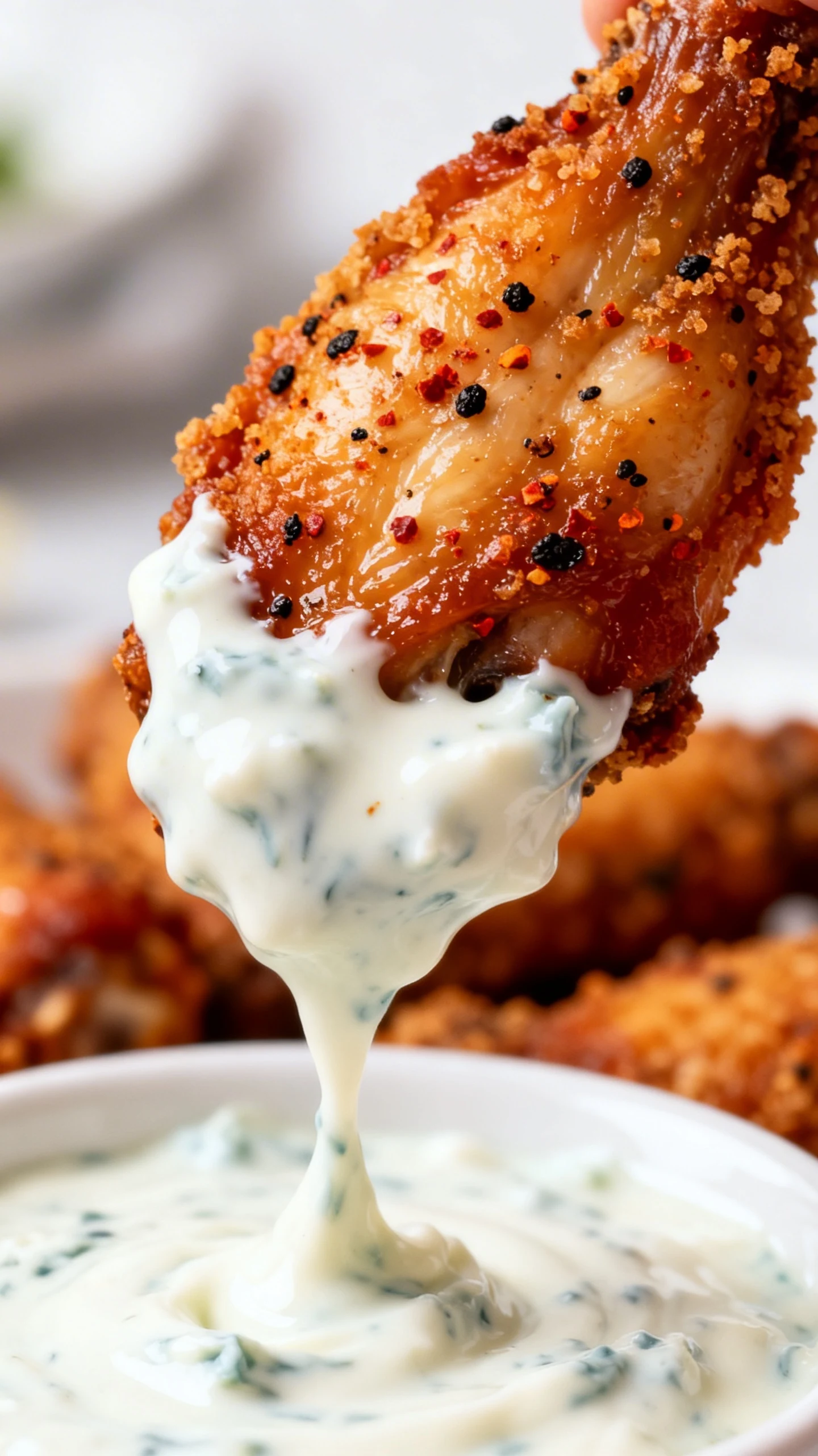 Rest briefly, then serve. Let wings sit 3 minutes so juices settle and the crust sets. Serve with dips and crunchy veggies, or just stand at the counter and “taste test” five of them. IMO, that’s the traditional method.
