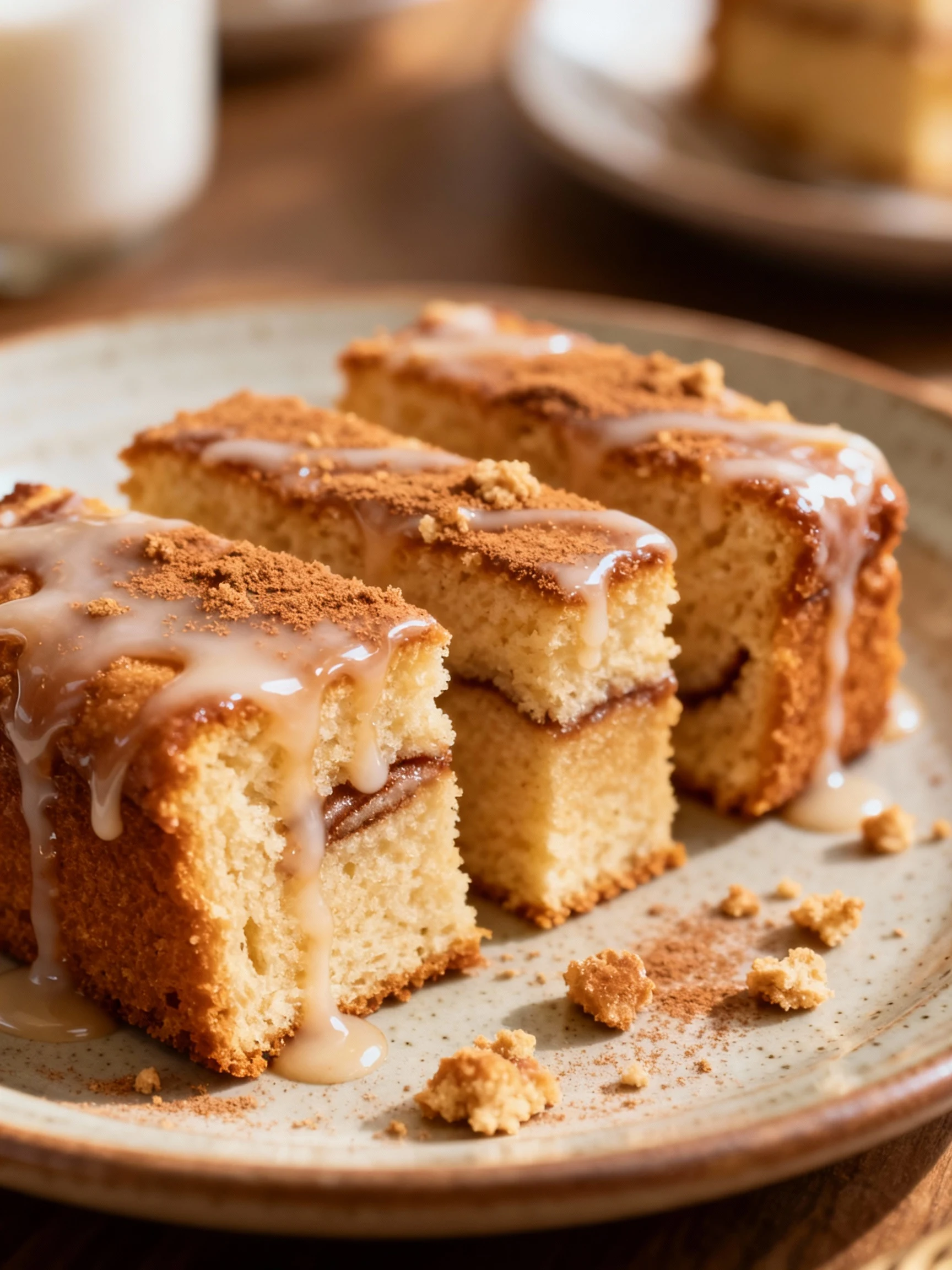 Also, we don’t overmix. Overmixing turns a cozy coffee cake into a chewy sponge that fights back. Mix just until the flour vanishes, then stop like you heard footsteps in a horror movie. Finally, the glaze goes on when the cake is warm, not hot, so it sets glossy instead of sliding off like it’s late for an appointment.