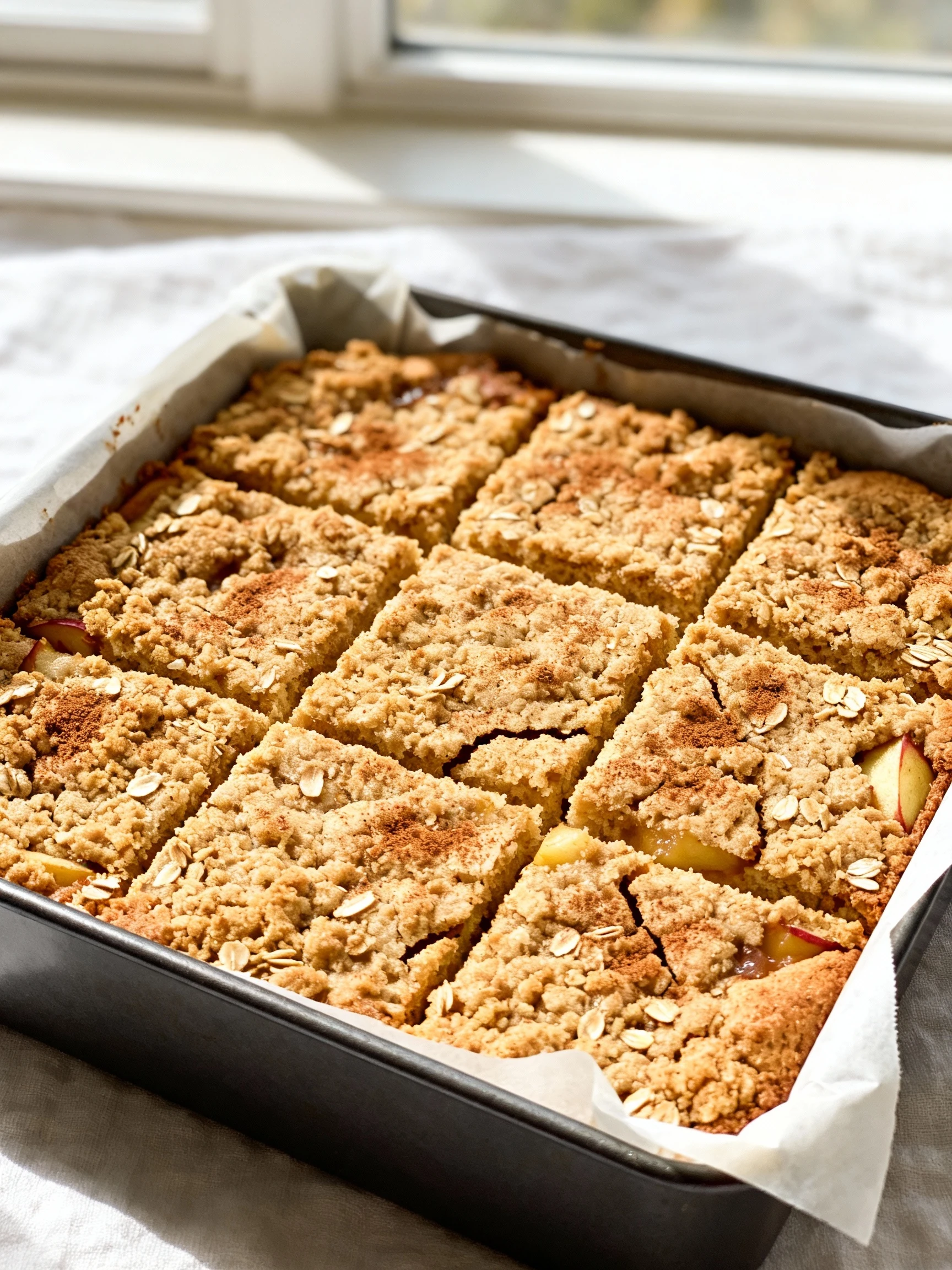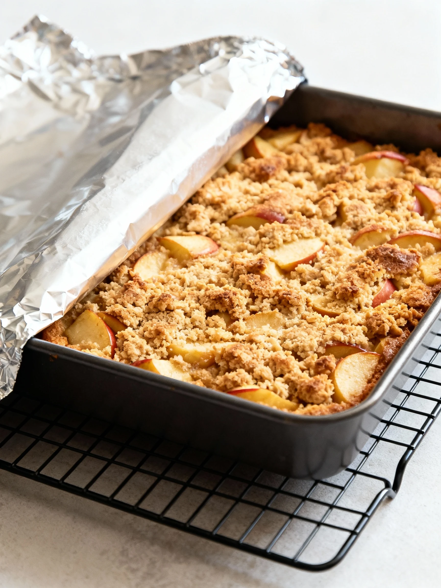- Big apple chunks: Dice small so apples soften evenly and don’t sink or create wet pockets.