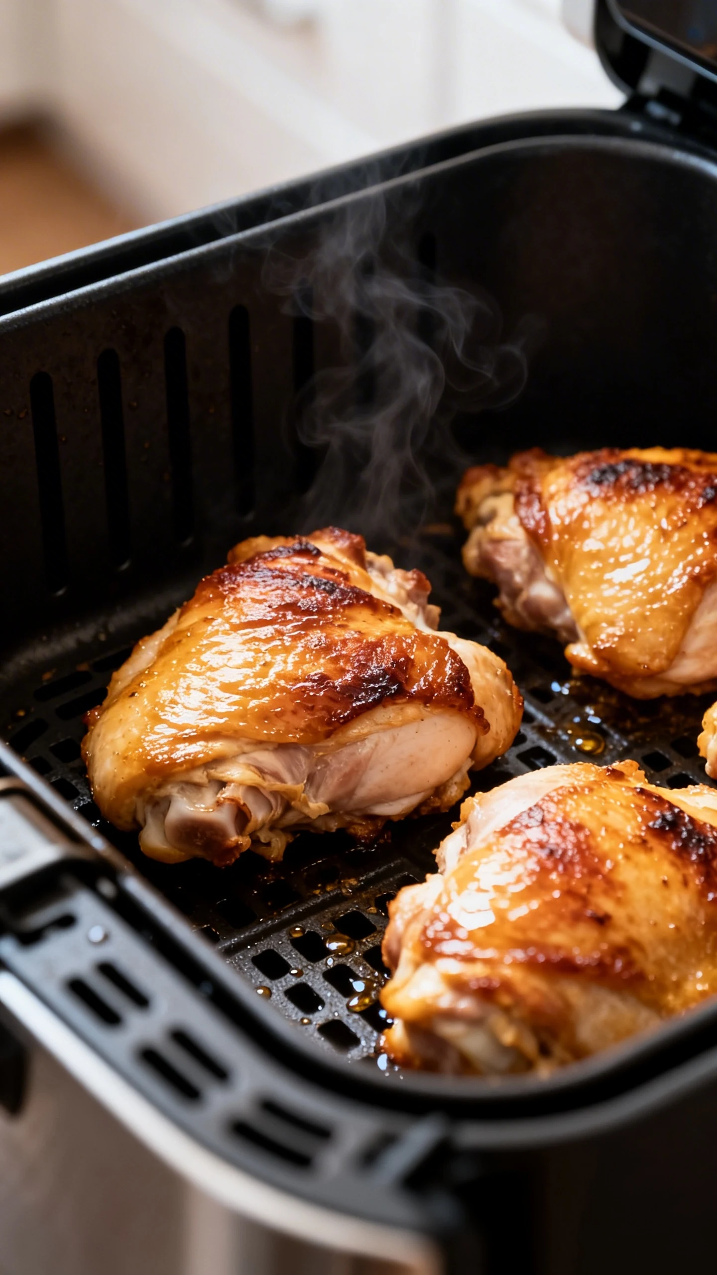 The secret is simple: build flavor in layers and let the air fryer do the heavy lifting. First, you season the thighs so the chicken tastes great even before the sauce. Then you cook hot and fast to render fat and crisp the outside without drying the inside. Finally, you brush on a thick honey-garlic glaze near the end so it caramelizes instead of burning.
