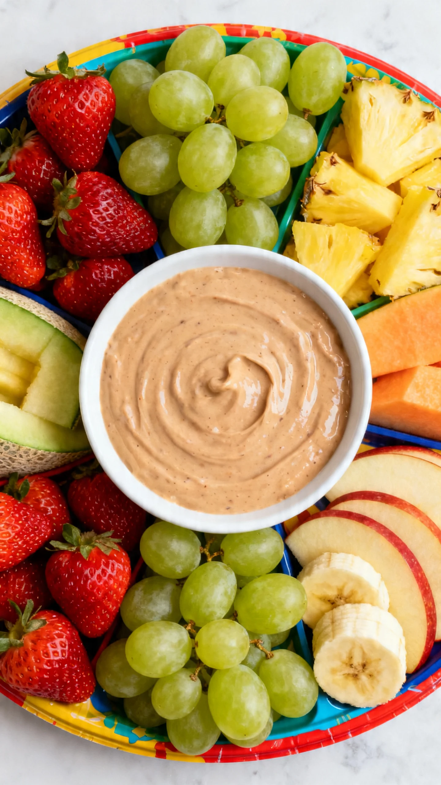 You can also garnish the bowl with chopped nuts, mini chocolate chips, or a dusting of cinnamon depending on the season. Keep the extras light, though. The dip should support the fruit, not turn into a chaotic parfait situation.