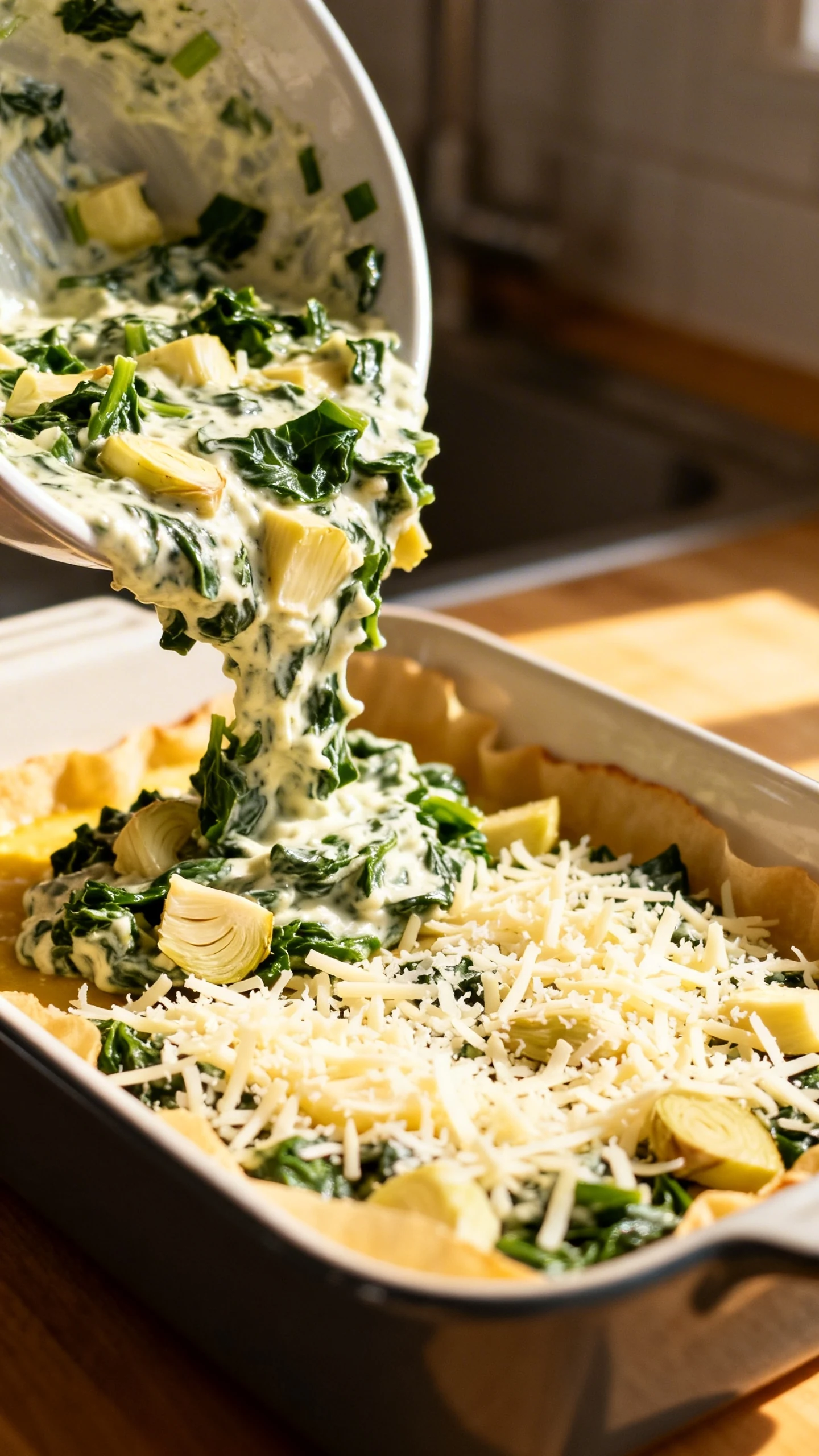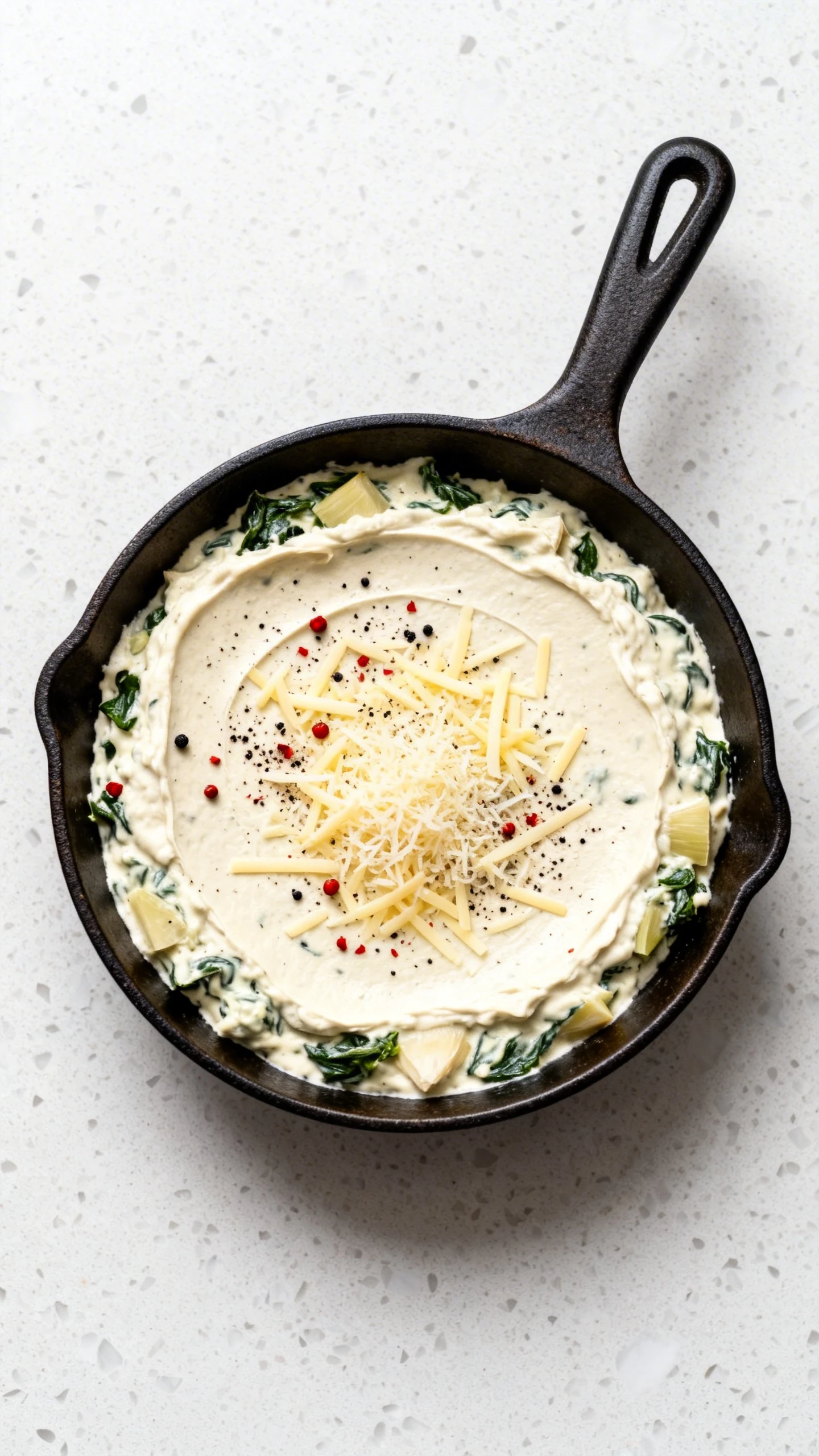Fold in the vegetables. Add the dried spinach and chopped artichokes to the bowl. Stir until evenly combined. The mixture should look thick and creamy, not loose.