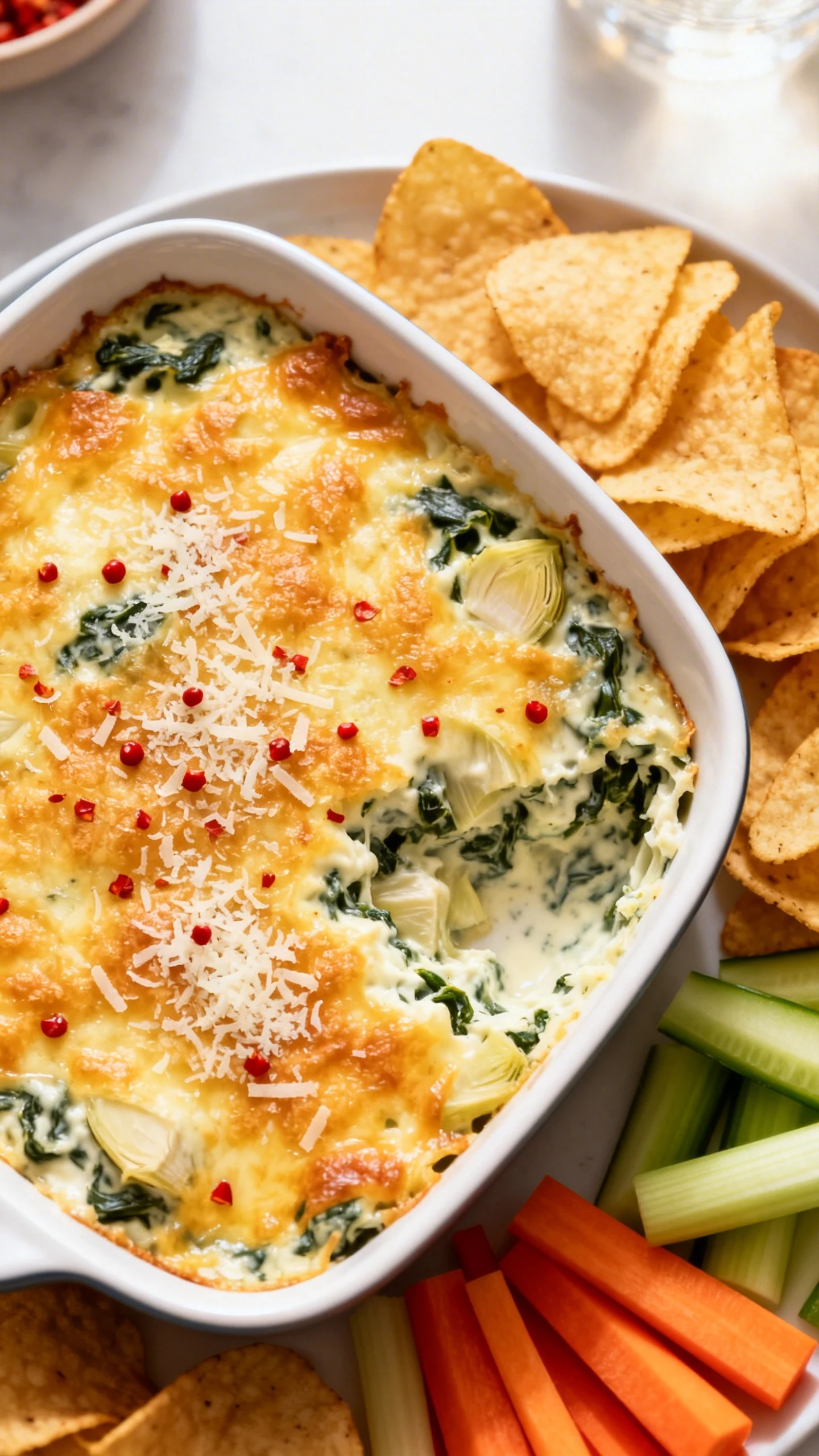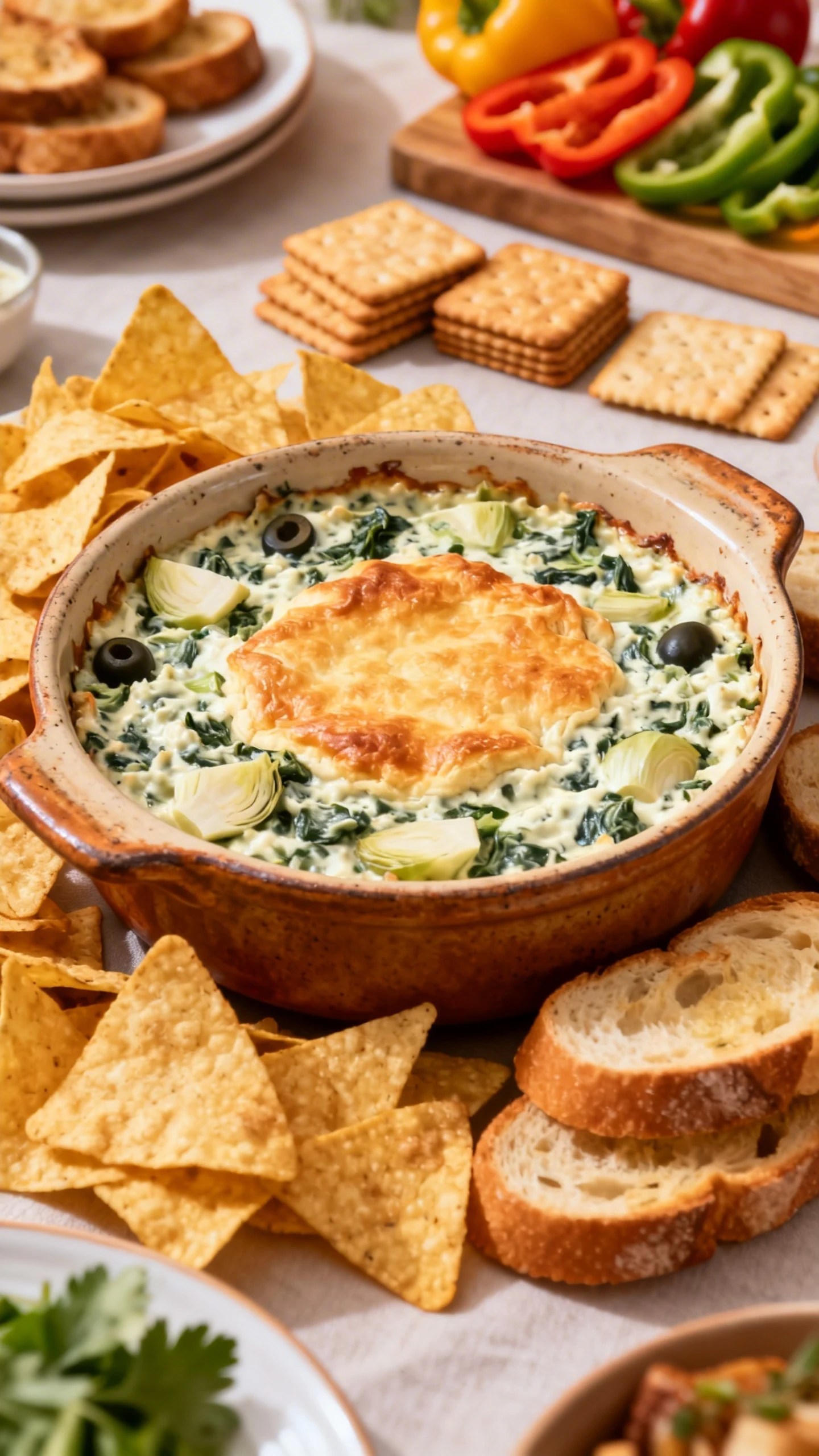 For serving, pick your carb weapon of choice. Tortilla chips work, toasted baguette slices feel classy, and crackers keep things simple. Fresh veggies like celery or bell pepper strips also work if you want balance, or at least the illusion of it.