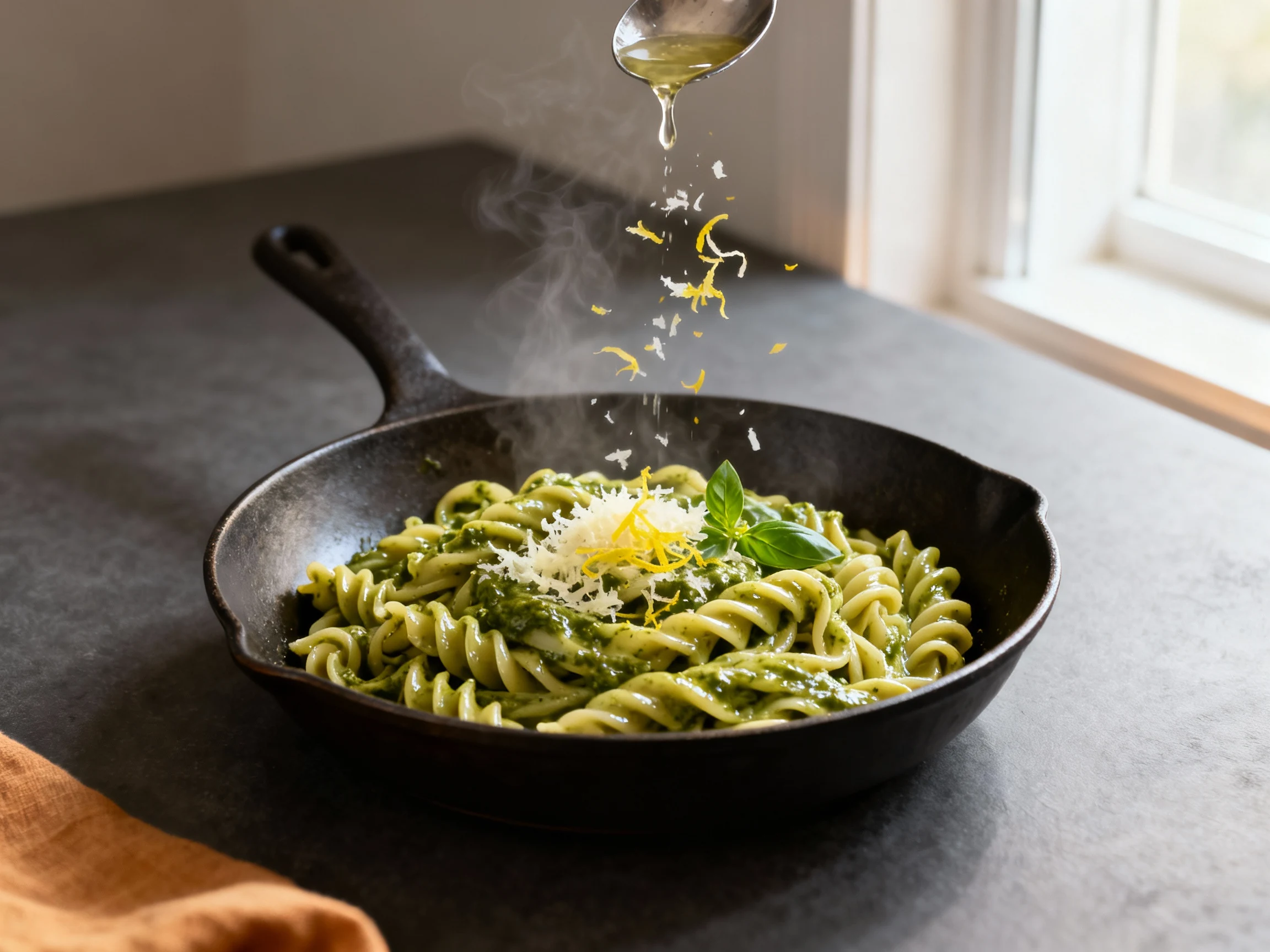 Two more power moves seal the deal. First, use finely grated Parmesan (it melts and emulsifies quickly). Second, add your creamy component off the heat if you’re using yogurt or ricotta, so nothing curdles. Finish with a pop of lemon zest and juice to brighten the basil and cut through richness. Creamy, vibrant, done.