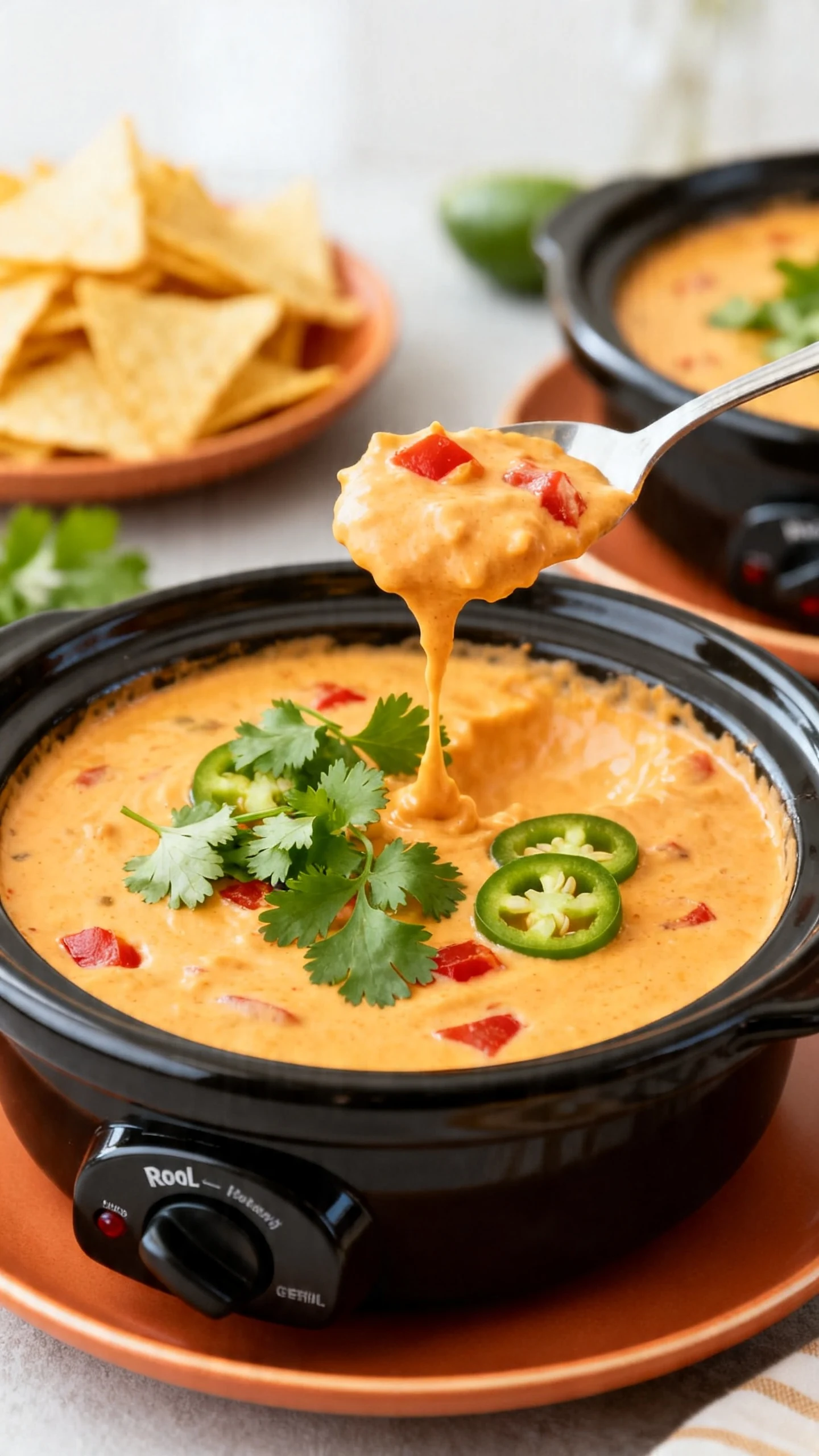 Brown the meat first, then add everything to a slow cooker on low. Stir occasionally until melted and smooth, then keep it on warm for serving. This is the easiest option for parties because it stays ready without constant babysitting.