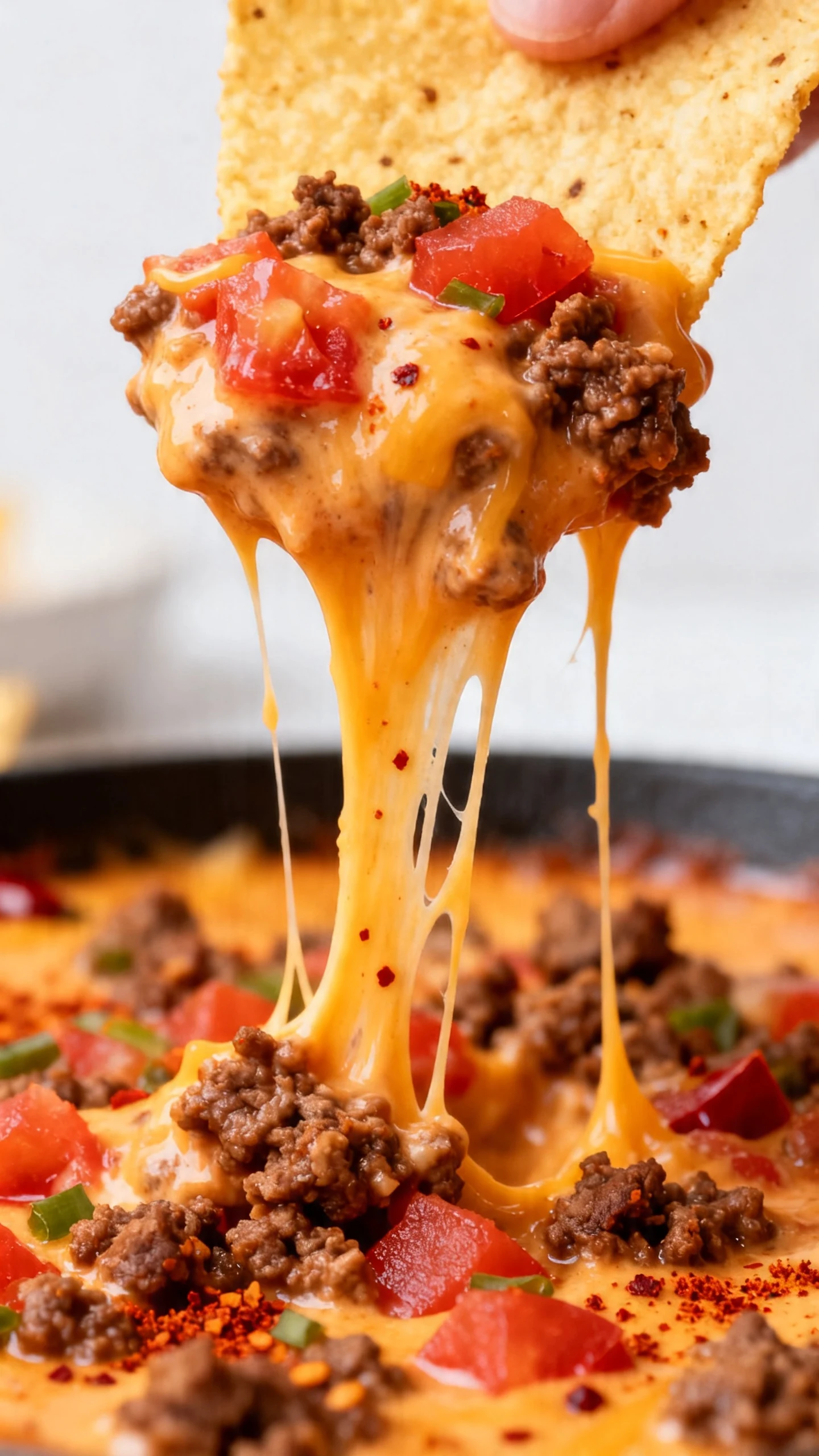 The flavor hits all the right notes. You get creamy cheese, savory beef or sausage, a little heat, and bright tomato flavor in every bite. It is rich without being boring, which is a rare talent for a dip.