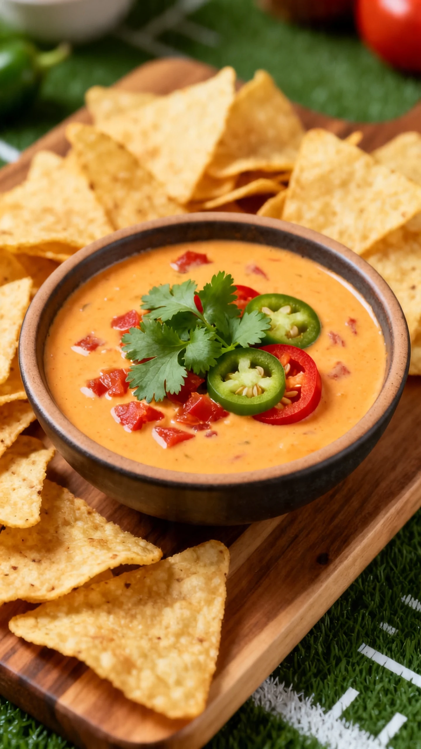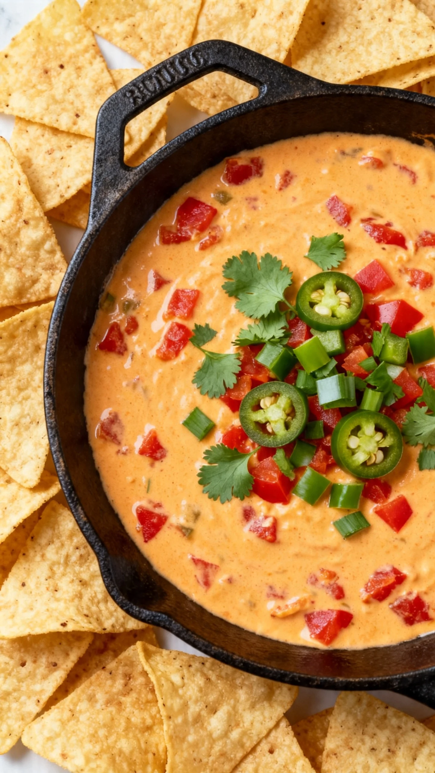 Finish and serve. Stir in cilantro if you want a fresh pop. Serve immediately with tortilla chips, or transfer the dip to a slow cooker on warm so people can keep circling back like they were not just here five minutes ago.