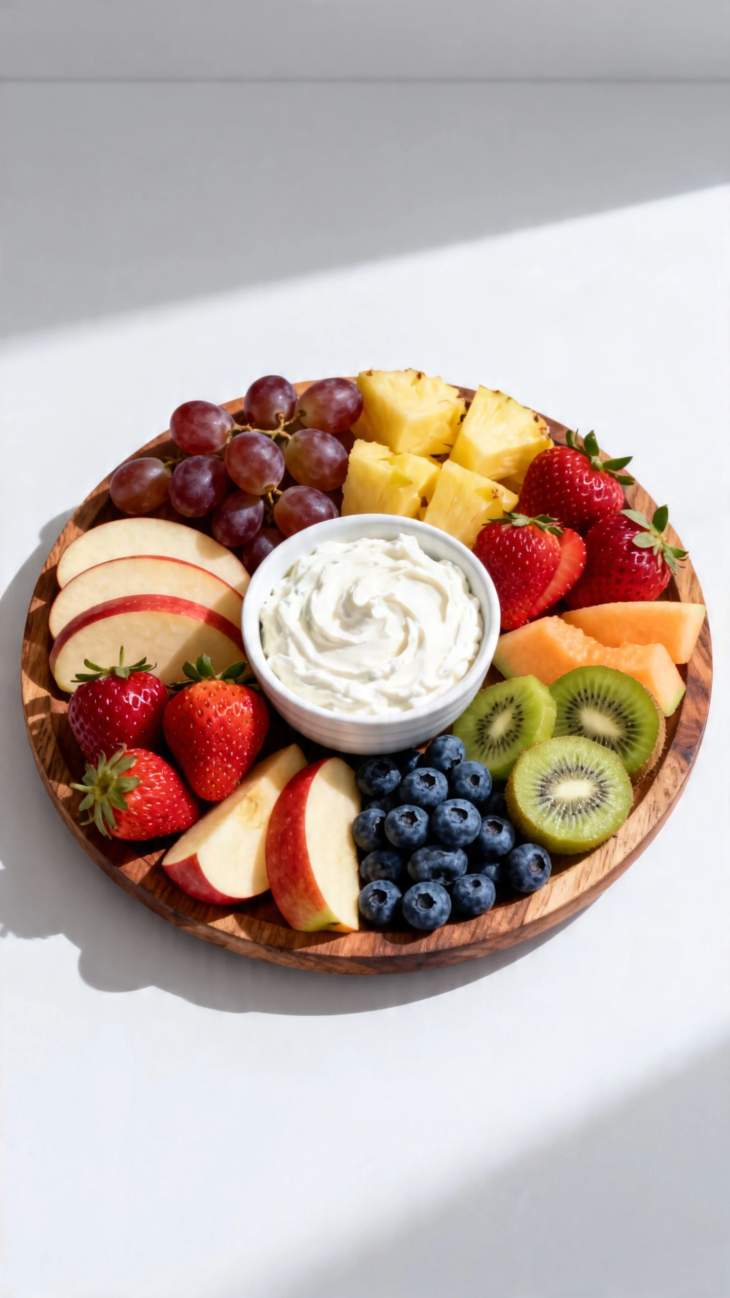 Strawberries, grapes, apple slices, pineapple, blueberries, kiwi, and melon all work great. Try to use fruit that is firm enough to scoop without falling apart. A good platter usually includes a mix of sweet, tart, juicy, and crisp options.