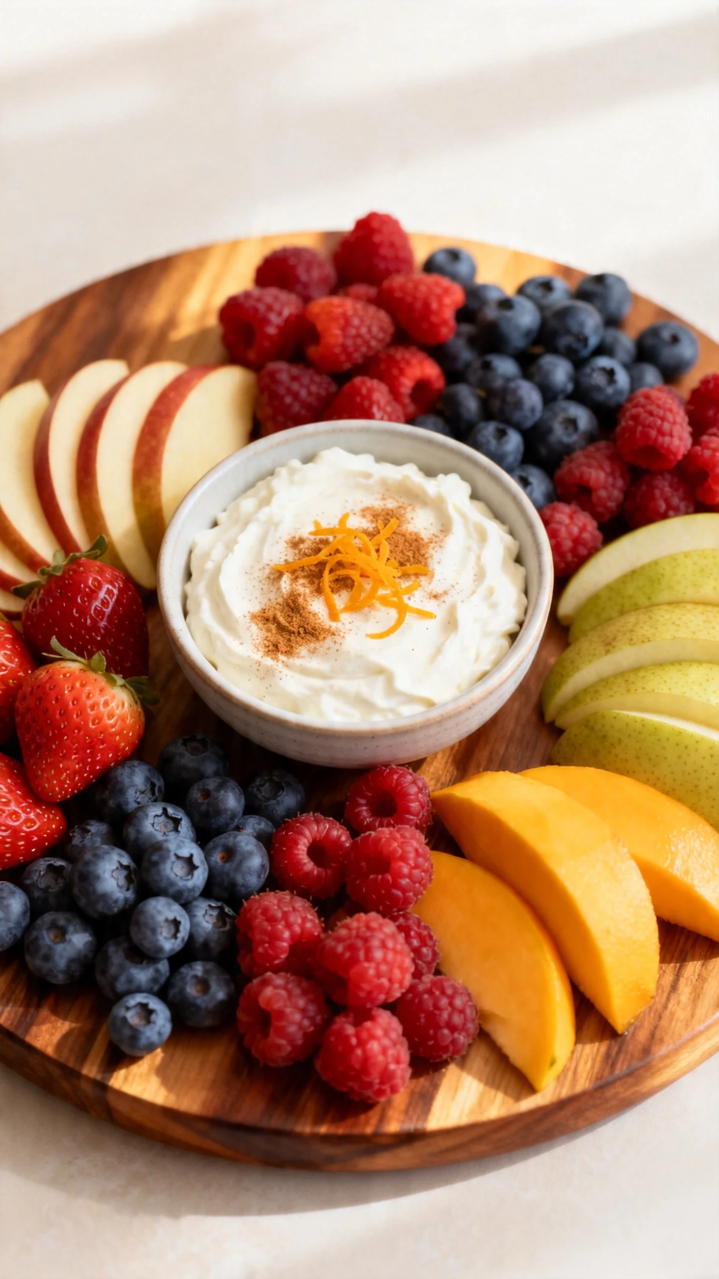Serve and watch it vanish. Spoon the dip into a serving bowl and place it in the center of the fruit. Add a light sprinkle of cinnamon or a little citrus zest on top if you want it to look extra polished.