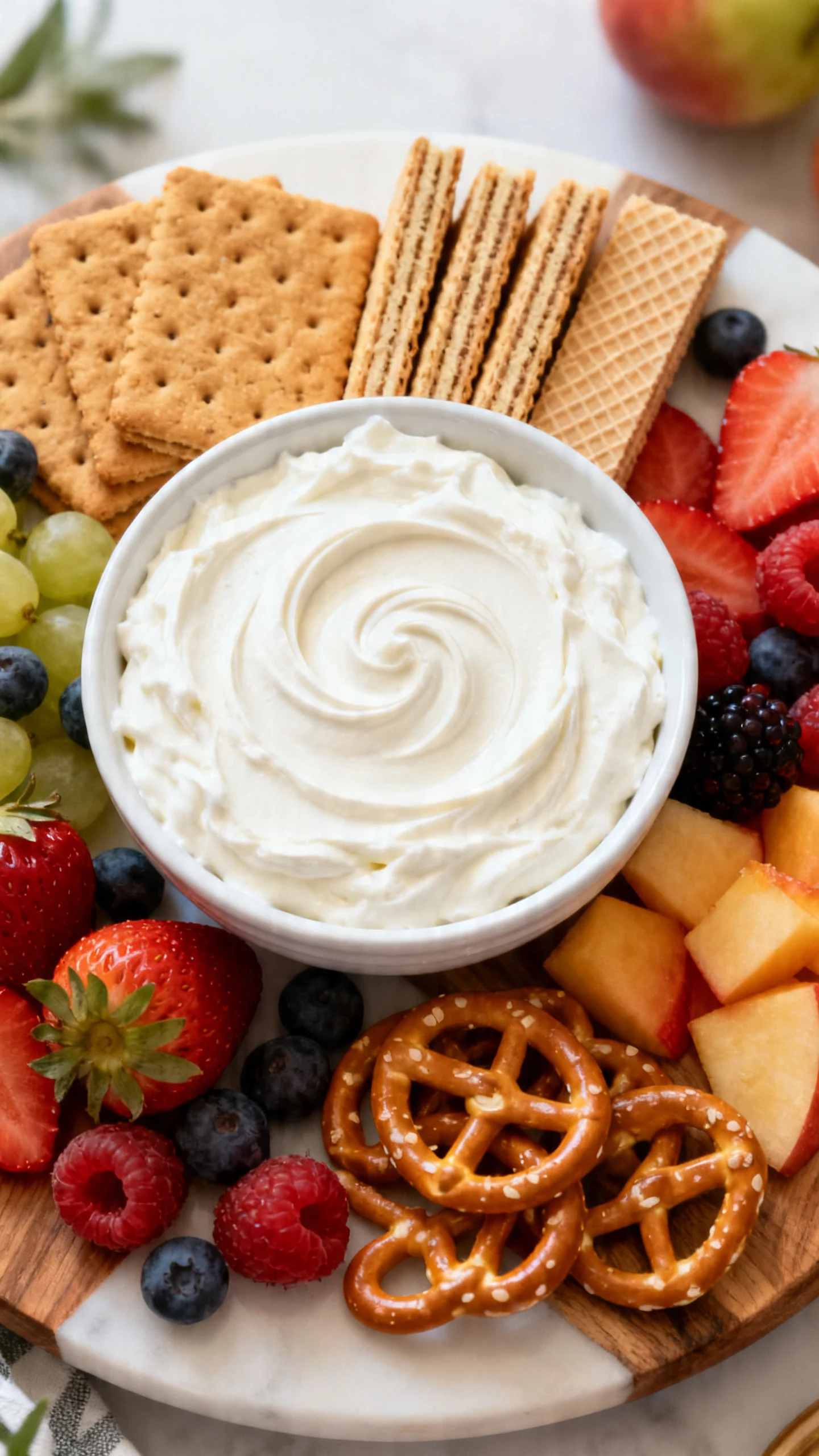 Absolutely. Graham crackers, vanilla wafers, pretzels, and pound cake cubes all pair nicely with this dip. That said, once cookies enter the chat, the line between snack and dessert gets very blurry.