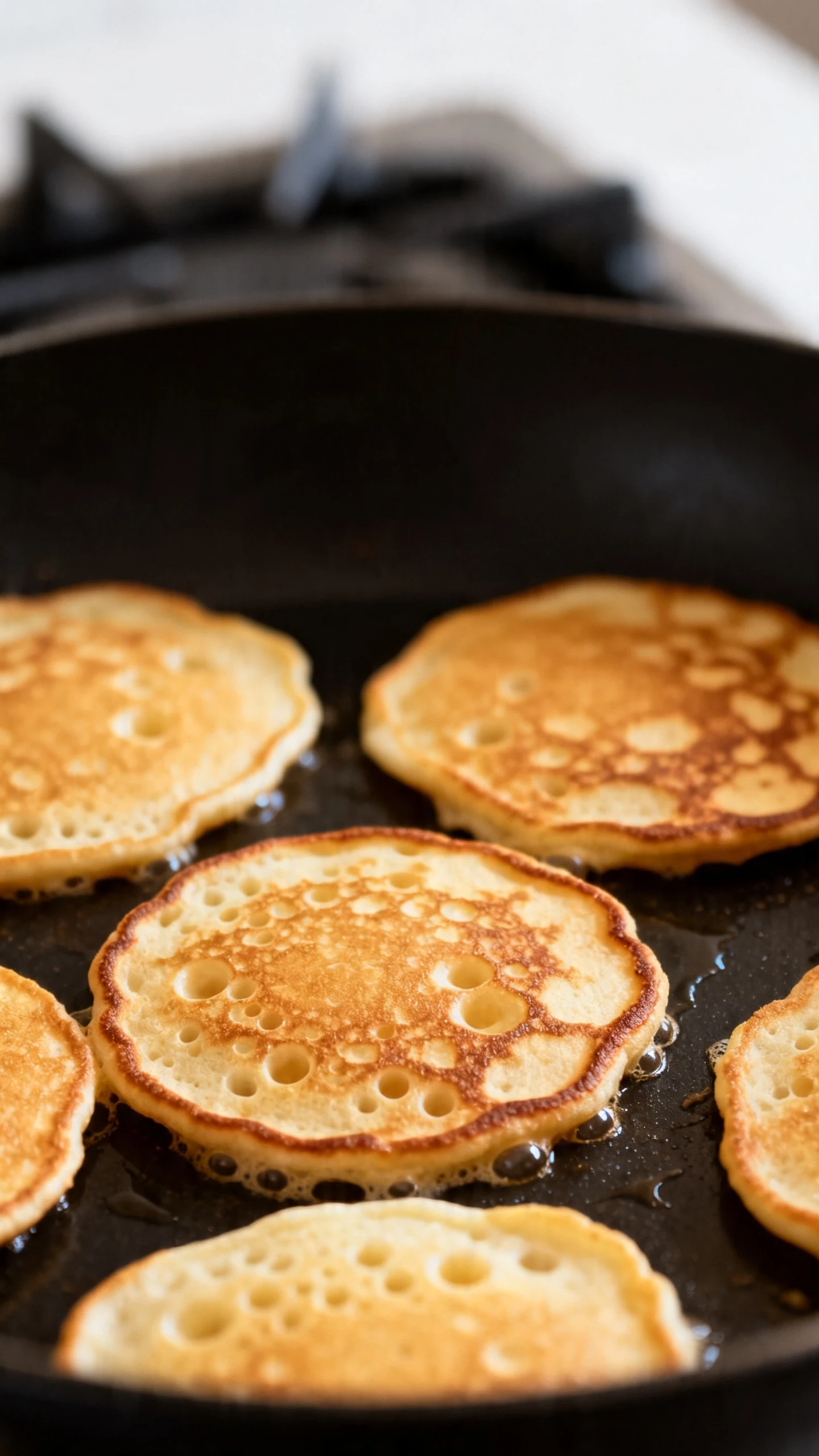 Add the dry ingredients. Stir in flour, salt, baking soda, and baking powder. Mix just until no dry patches remain. Overmixing gives you dense results, and nobody wakes up hoping for a pancake with the personality of a hockey puck.
