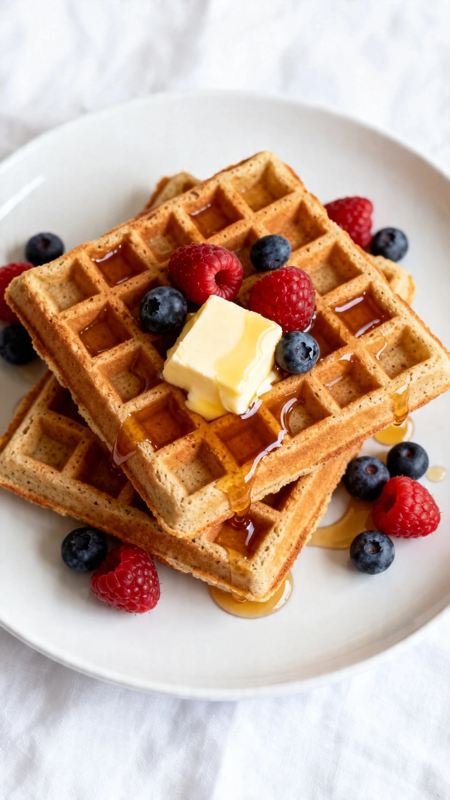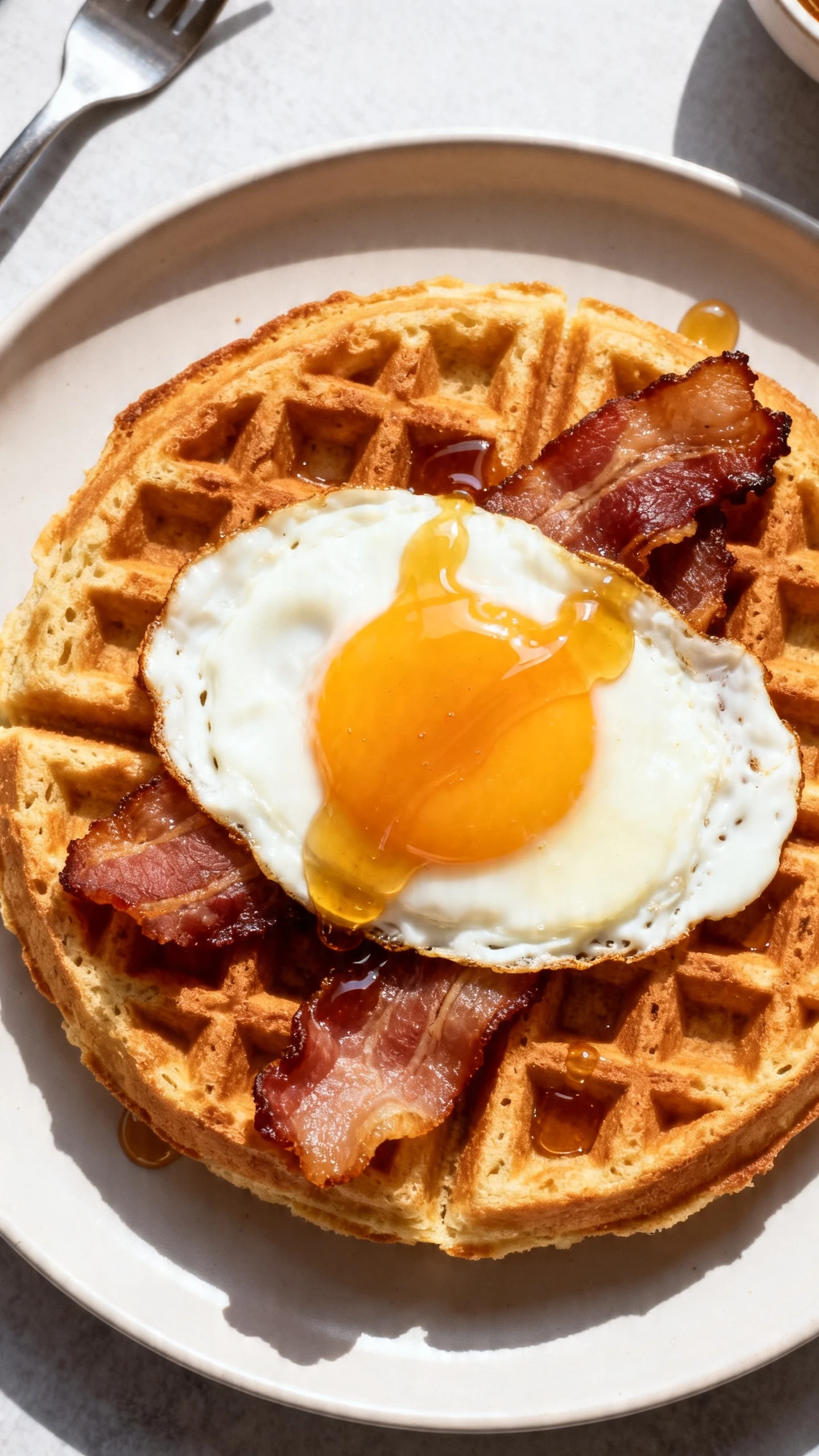 For serving, think maple syrup, berries, Greek yogurt, powdered sugar, fried eggs, crispy bacon, or even a swipe of salted honey butter. Waffles are not the place for restraint.