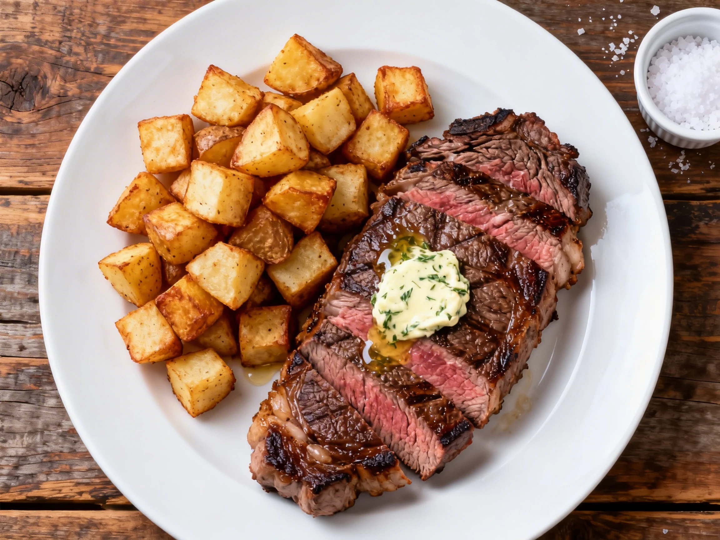 Bring the steak closer to room temp. Set it out for 15 to 25 minutes while you prep potatoes. This helps it cook more evenly, which means less “raw in the middle, overcooked outside” drama.