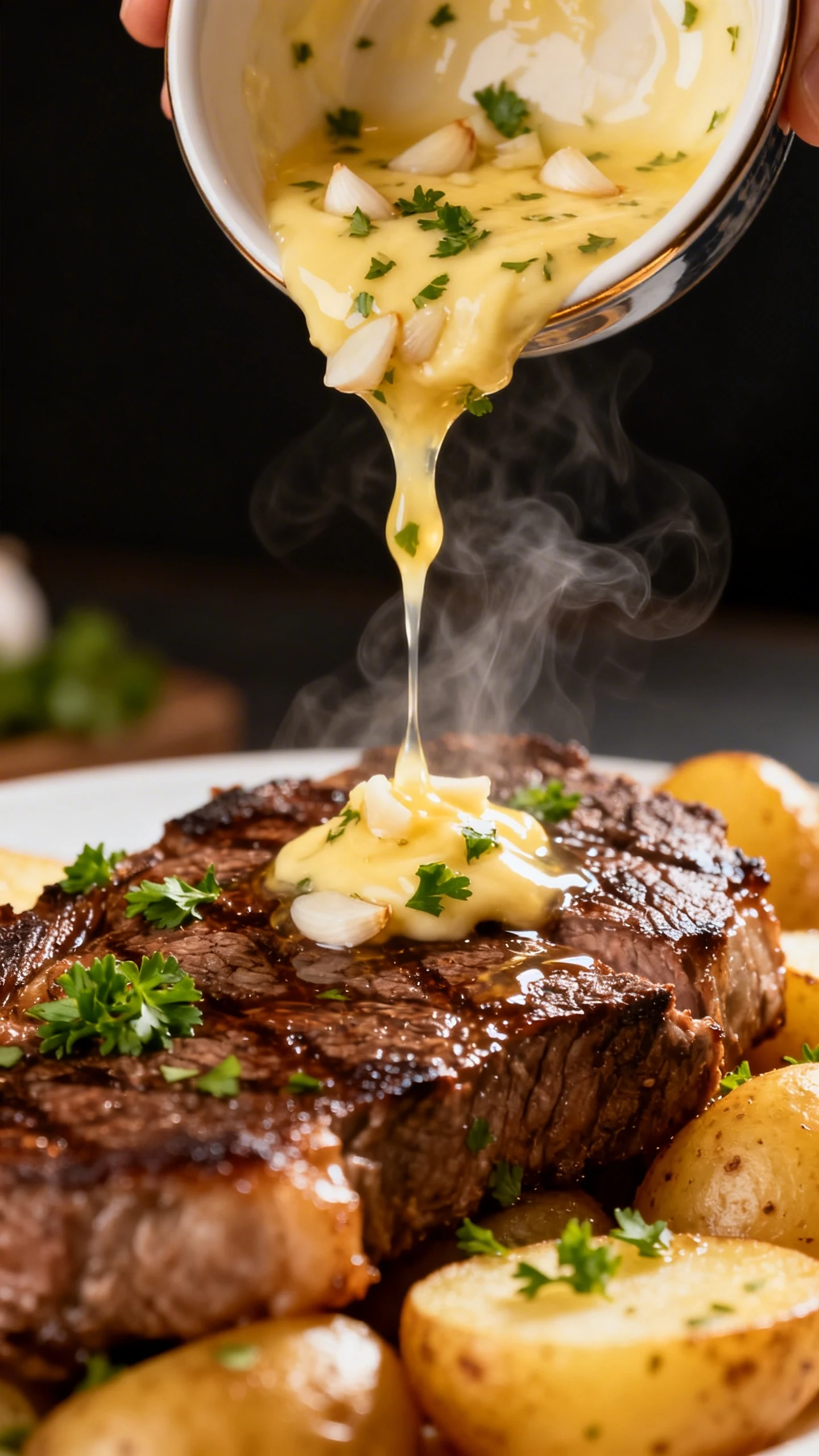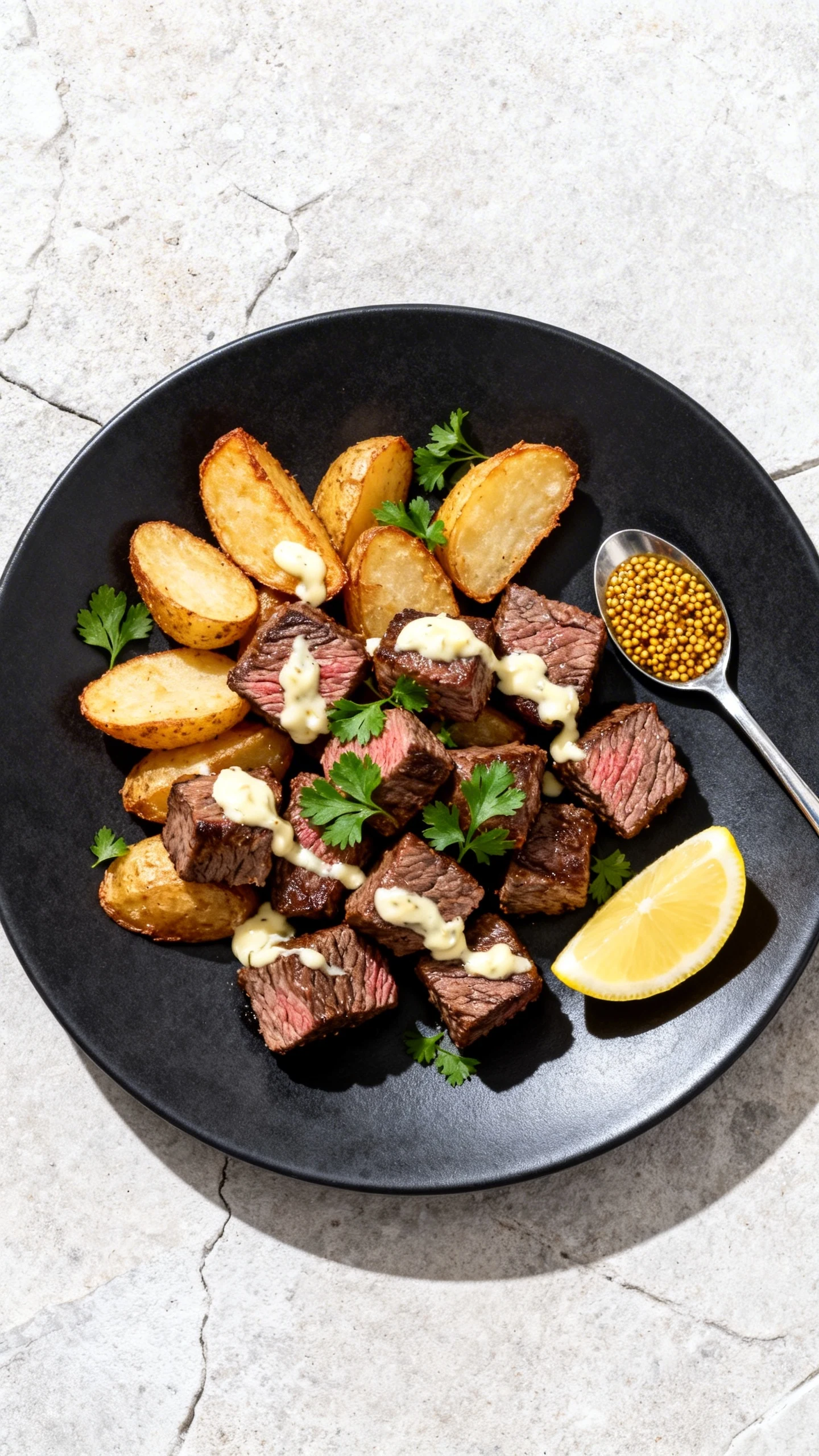 Quick garlic butter finish. Melt butter and stir in minced garlic (microwave 20 to 30 seconds or warm in a small pan). Toss potatoes and steak with the garlic butter, add parsley, and a tiny spoon of Dijon if you like that “why is this so good” tang.